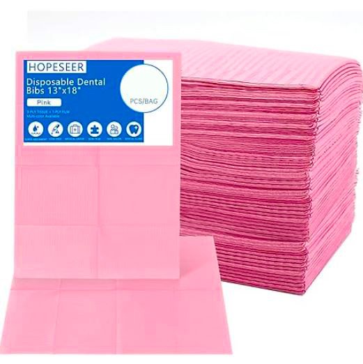 Patient Bibs, 2 Ply Paper + 1 Ply Poly, 6.5 gram, Pink