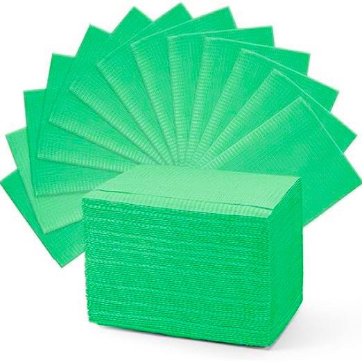 Patient Bibs, 2 Ply Paper + 1 Ply Poly, 6.5 gram, Green