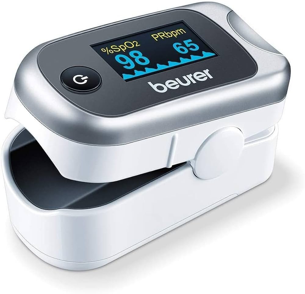 جهاز يقيس نسبة الأوكسجين بالدم كما يقيس ضربات القلب الجهاز صغير و يسهل حمله لأي مكان يمكن استعماله بالمستشفيات أو المنازل.