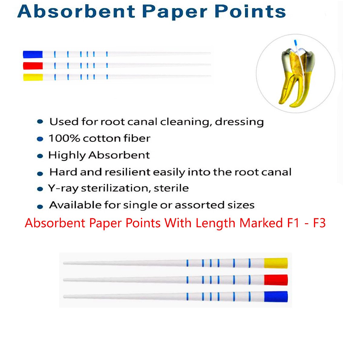 Absorbent Paper Points With Length Marked F1 - F3
