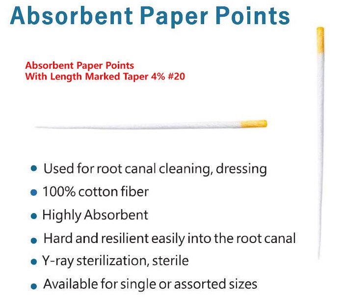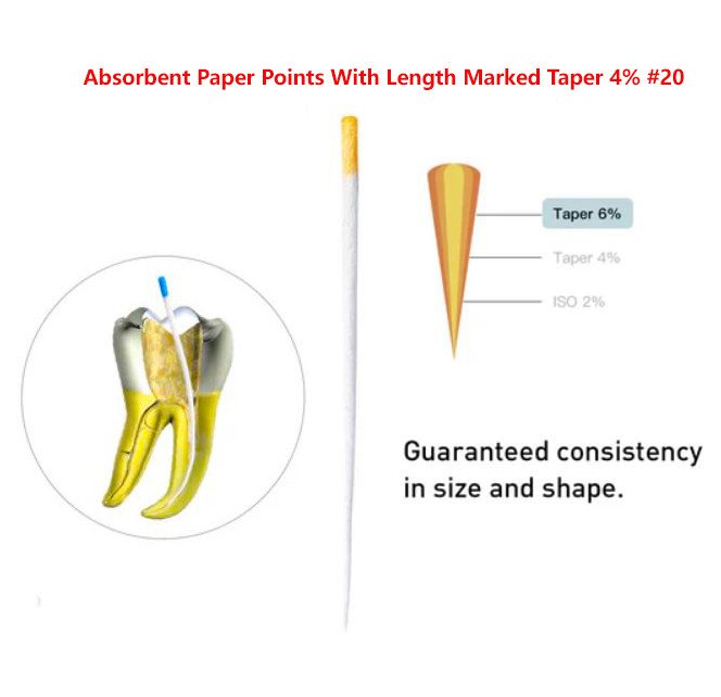 Absorbent Paper Points With Length Marked Taper 4% #20