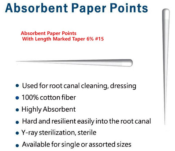 Absorbent Paper Points With Length Marked Taper 6% #15