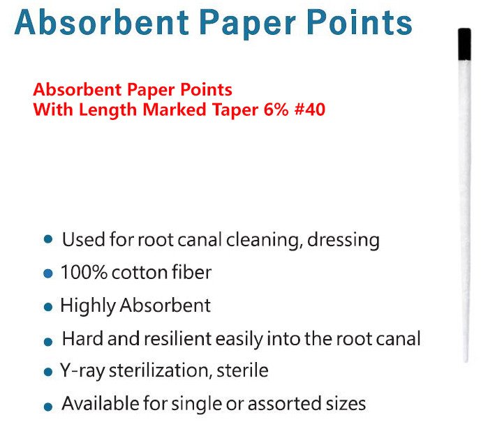 Absorbent Paper Points With Length Marked Taper 6% #40