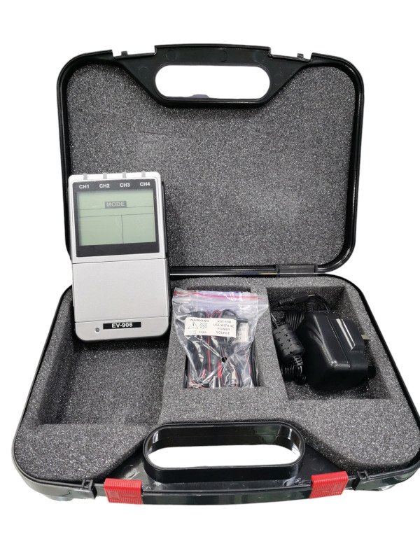اربع مخارج مستقلة يمكن استخدامه لأربعة اشخاص في وقت واحد ومزود بمفتاح لضبط طول النبضات تسع مستويات وشاشة صغيرة كمؤشر لعمل النبضات.
