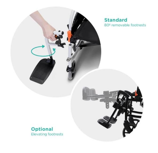 • ضبط قابل للتعديل يتيح لكرسي المتحرك آجيل Agile ضبط الارتفاع وزوايا المقعد والقدمين.