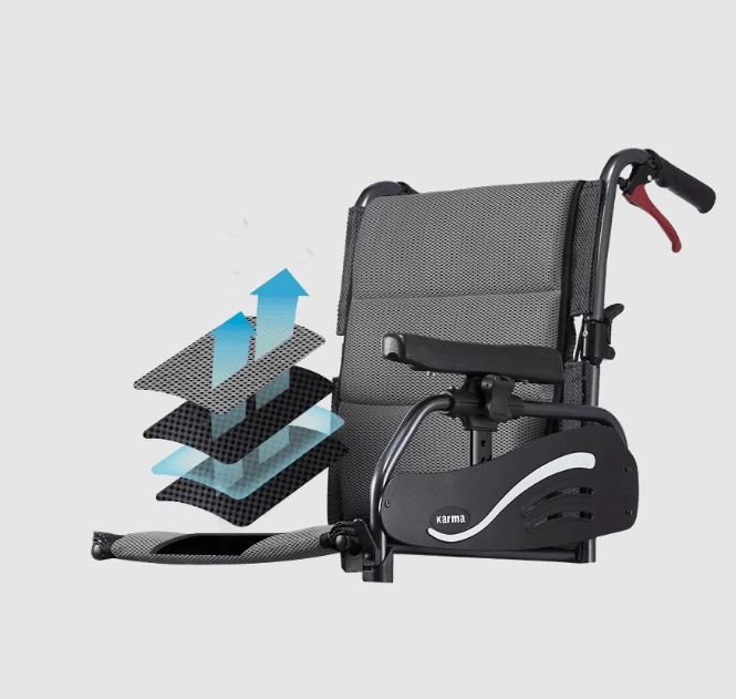 • New design lightweight folding Tilt-in-Space wheelchair (VIP 515). • Extremely comfortable. • Patented hydraulic tilt feature that allows for smooth and controlled tilt • Tilt 0-35 degrees. • Allows knee alignment in tilt. • 18 inch Small size. • Tilt-in-Space system allows the host to change the user's position by tilting the chair, thus transferring pressure away from one point and redistributing it over a larger area. This feature helps reduce the risk of pressure sores and avoid back pain. • Uses intelligent weight transfer technology to the center of gravity and maintains stability while tilting the chair. • Folds compactly and provides greater convenience for storage and travel. No tools are required for assembly or disassembly • Adjust the ideal armrest height by moving it up or down. The appropriate height of the armrest helps relieve loads on the neck, shoulders and arms and relieves pressure on the back. • Leg swivel mechanism to provide maximum comfort when the user enters and exits the