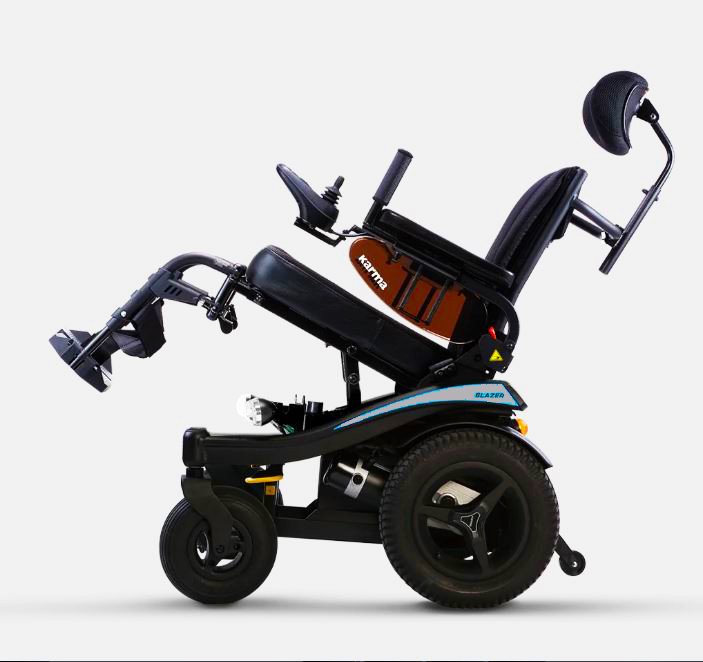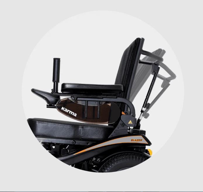 • Electric wheelchair (Blazer kp-31.2 Silver) with rear-wheel drive, your magic guide to a life full of adventures. • A distinctive electric chair from Karma with rear-wheel drive. • The ability to climb heights and walk on slopes. • Foldable and storable. • Holds up to 136 kg. • Walking range up to 26 km. • Size 20 inches Small. • Its weight is very light compared to different electric chairs without a battery 70 kg and with a battery 98.5 kg. • Modern design and colors white, orange and blue