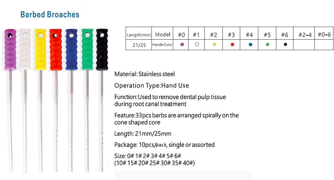 Barbed Broach Stainless Steel #0-6 - 25 mm