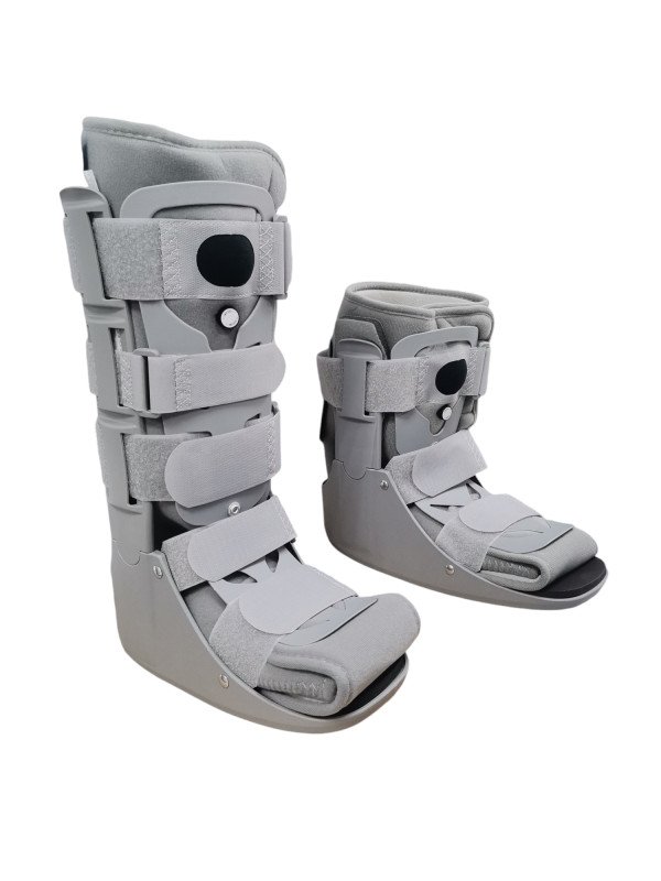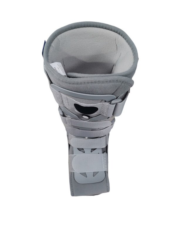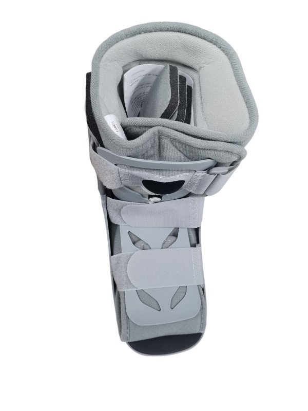 الجبيرة الهوائية لتدعم المستخدم بالكامل دون التأثير على قدرته على المشي والحركة تتكون  من هيكل خارجي صلب ووسادة داخلية إسفنجية.