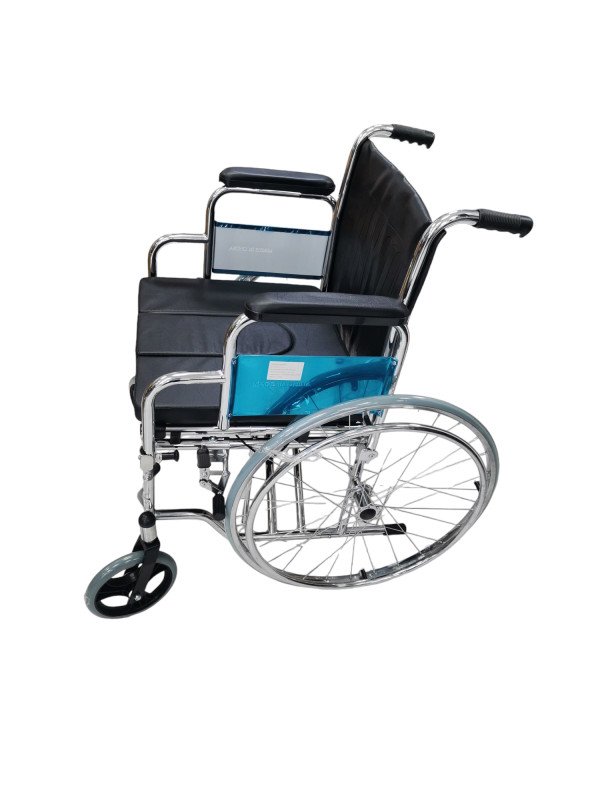كرسي مع حمام بكفرات كبيرة لتوفير الدعم وسهولة الحركة.