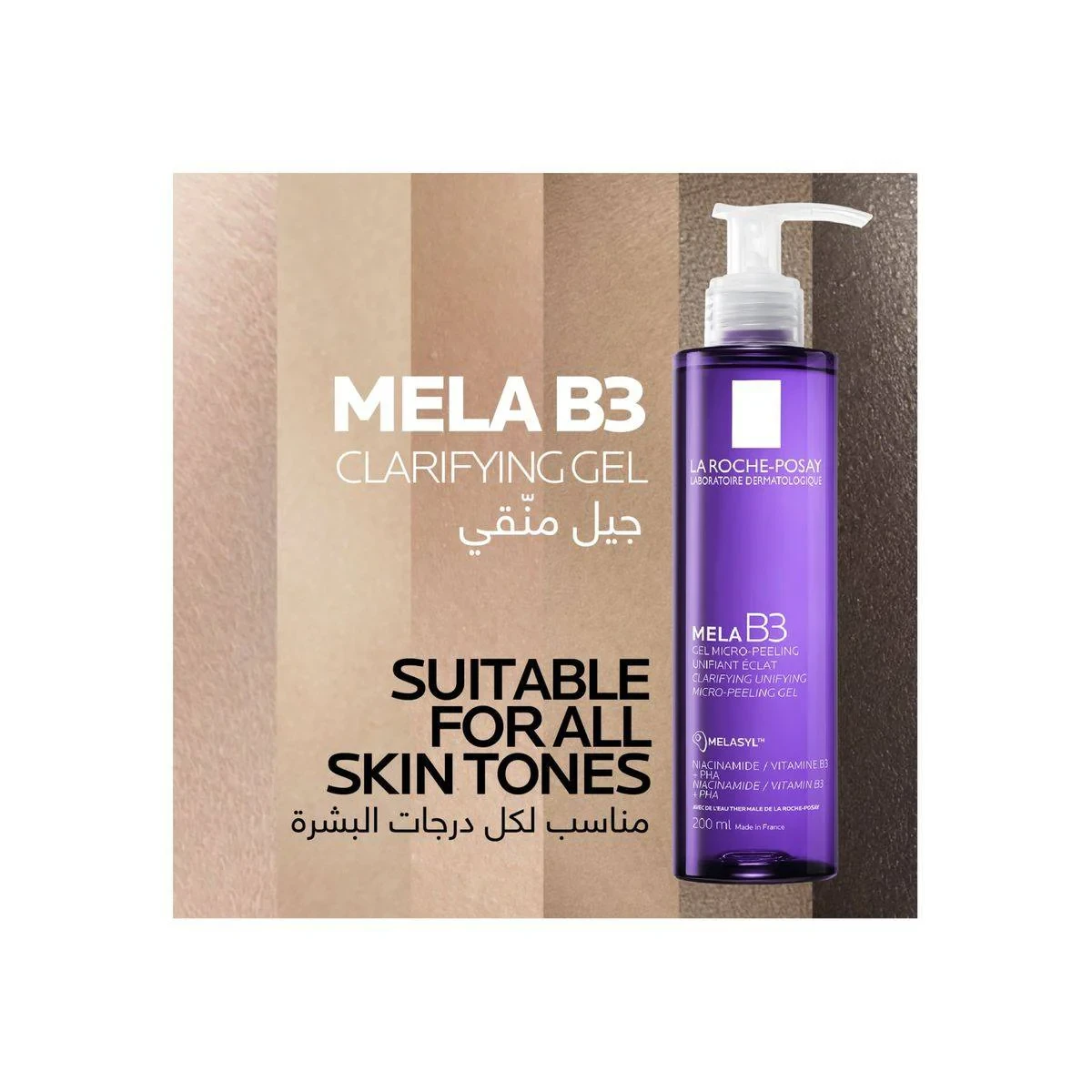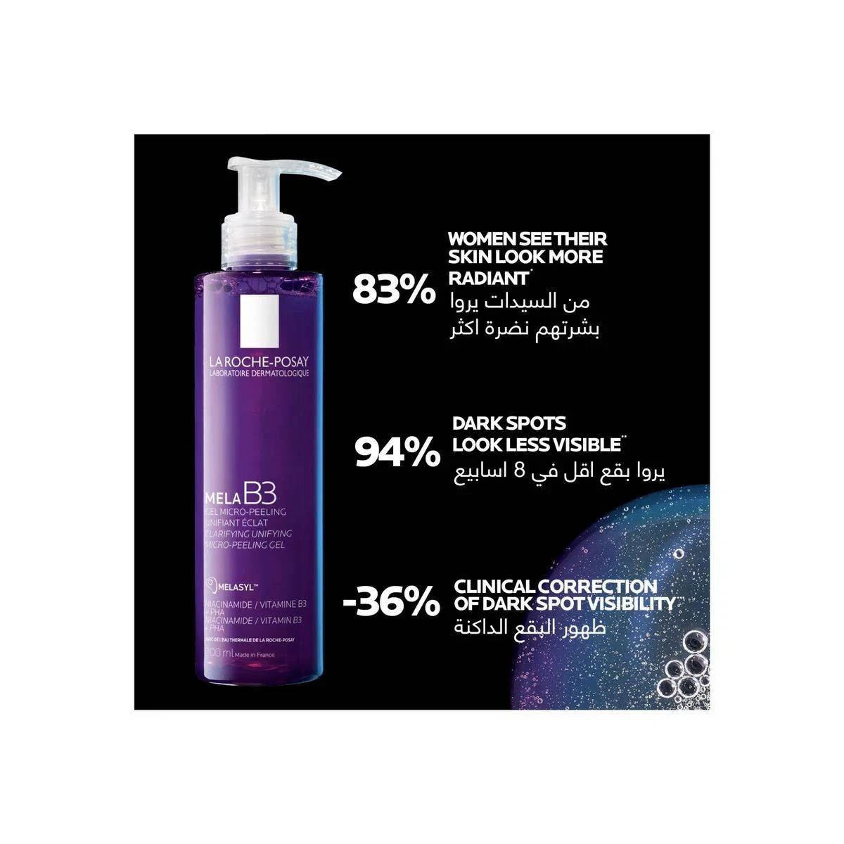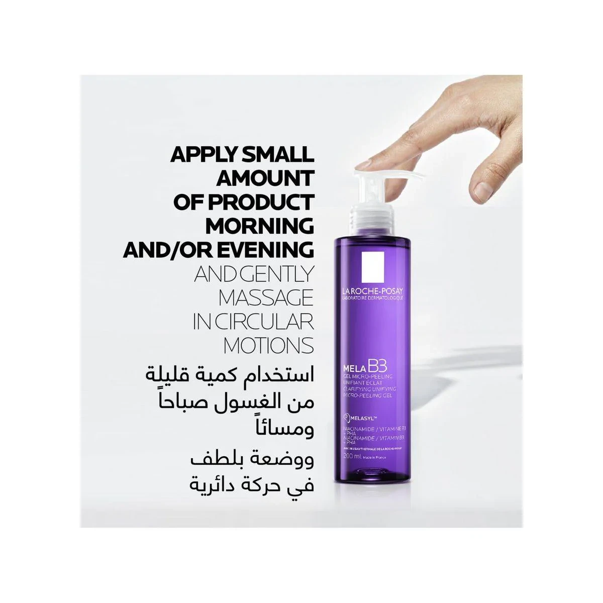 La Roche-Posay Mela B3 Micro-Peeling Gel is a gentle exfoliating cleanser designed to brighten skin and reduce dark spots. Formulated with Melasyl, Niacinamide, and PHA, it cleanses without drying, suitable for all skin types. Dermatologically tested, it maintains the skin's natural moisture barrier and pH. Ideal for daily use, it reveals a more even skin tone. Key Features