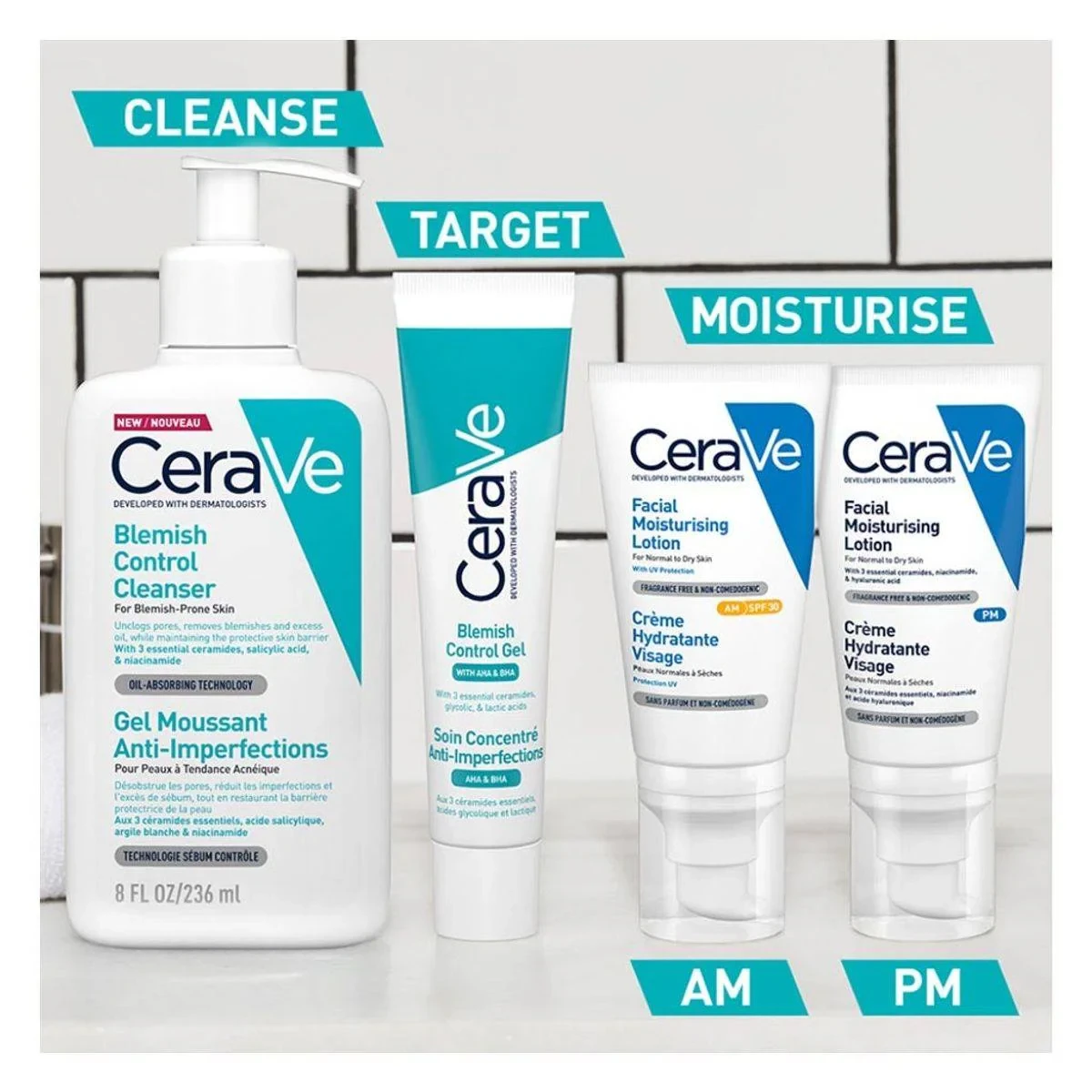 This refreshing gel-to-foam cleanser for blemish-prone skin reduces blemishes and blackheads, removes excess oil, and maintains the skin's natural barrier. Developed with dermatologists, it features essential ceramides, salicylic acid, and niacinamide. Key Features