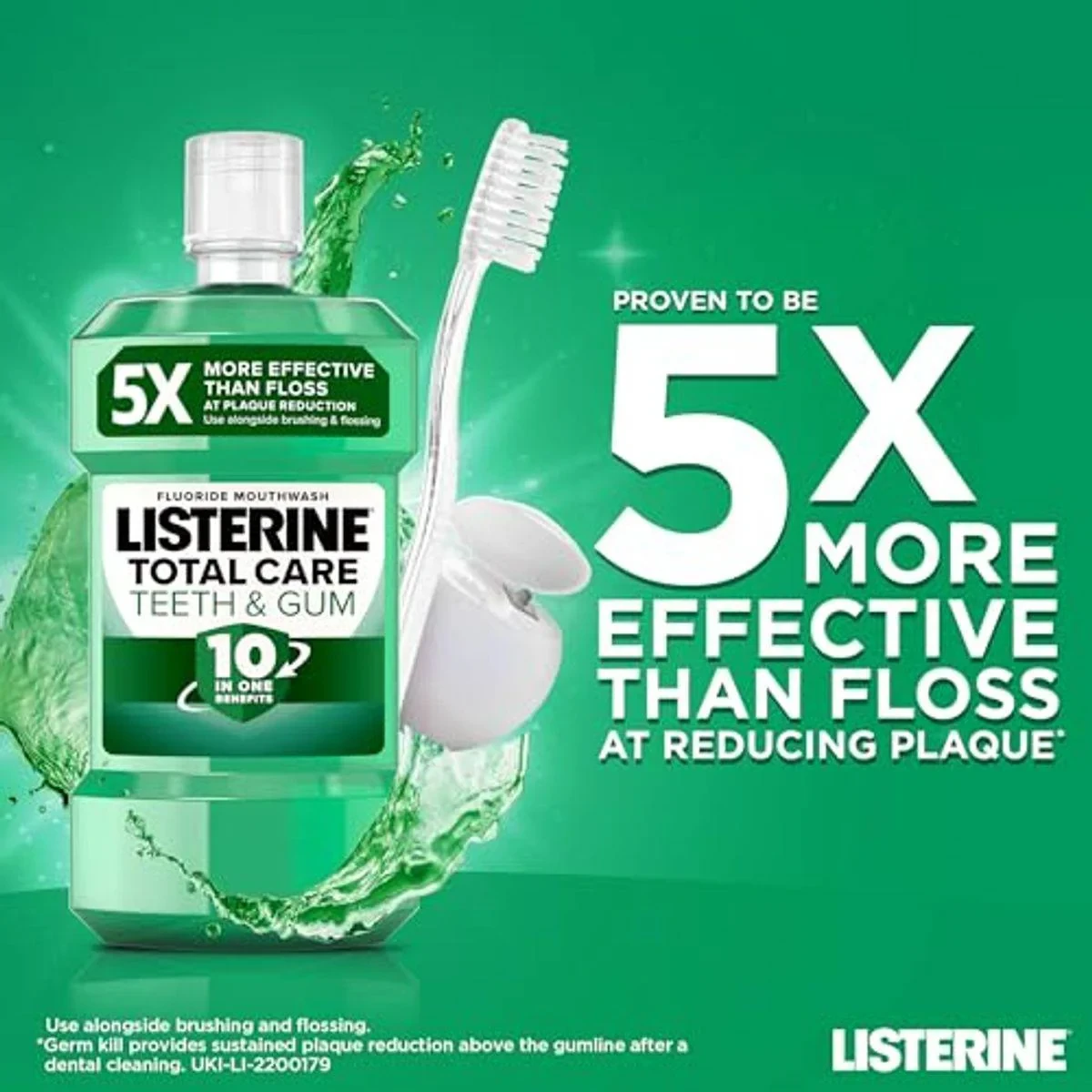 Listerine Mouthwash Teeth & Gum Defence Zero offers 10 in one benefits for comprehensive oral care. Clinically proven to protect gums and reduce plaque. Ideal for daily use to maintain oral hygiene. Key Features All round protection for stronger teeth Clinically proven to protect gums 5x more effective than floss at plaque reduction Works below gum line 12-hour germ protection Helps prevent tartar Freshens breath Strengthens enamel Keeps teeth naturally white Fresh mint flavor Fluoride, Germ kill, Sustained plaque reduction, Cavity protection, Gum protection, Fresh mint.Leading oral care brand known for innovative mouthwash solutions.Use alongside brushing and flossing.Use alongside brushing and flossing.
