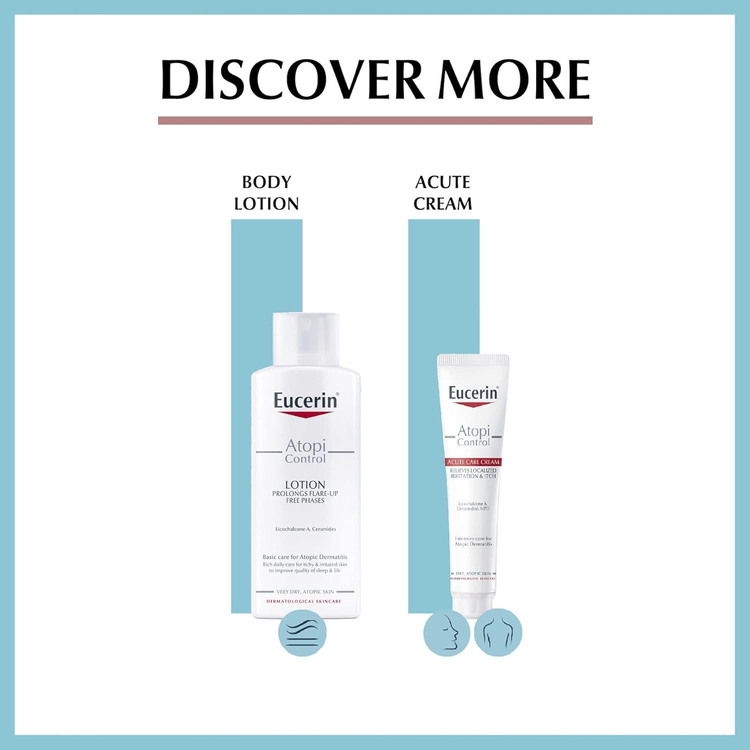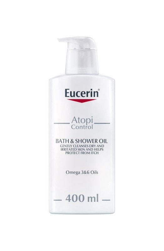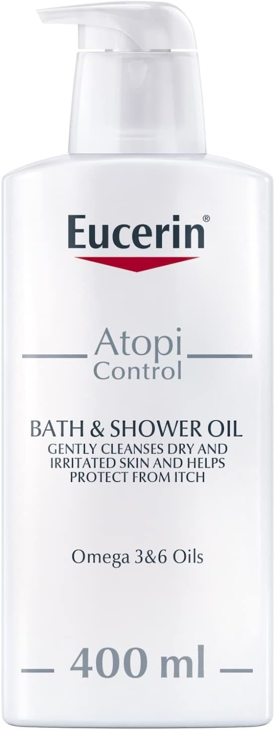 A gentle, daily-use bath and shower oil for the very dry, irritated, and itchy skin associated with Atopic Dermatitis. It cleanses without stripping the skin's moisture barrier. Features: 50% Omega Oils (Soybean and Castor Oil) to nourish the skin. Soap-Free, Fragrance-Free, Colourant-Free to minimize irritation. Relieves itching and helps restore the skin barrier. Suitable for adults, children, and babies (>3 months). Glycine Soja (Soybean) Oil, Laureth-4, Laureth-9, BHT.Eucerin is a German dermo-cosmetic brand (owned by Beiersdorf). AtopiControl is a line specifically for soothing and managing dry, irritated, or atopic-prone skin.For adults and children 3+ months: Apply to wet skin. Massage gently and rinse thoroughly. For babies, use only as an additional product to the bath. Gently pat dry (do not rub).For external use only. Avoid contact with eyes. Use caution as surfaces may become slippery after use.