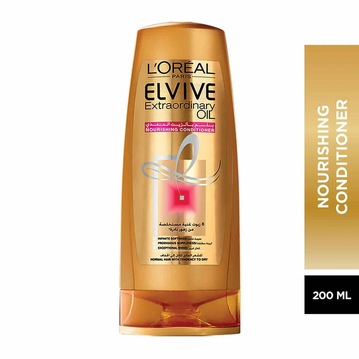 L'Oreal Paris Elvive Extraordinary Oil Conditioner nourishes dry hair with six oily flower extracts, leaving it soft, shiny, and manageable. Ideal for normal to dry hair. Features Enriched with 6 micro flower oils For normal to dry hair Provides deep nourishment Leaves hair soft and shiny Detangles tough knots Lightweight formula Suitable for all hair types Infused with amla oil 6 Micro Flower Oils, Amla Oil, Precious Blend Of Flower Extracts.L'Oreal Paris: Innovators in beauty, offering luxurious hair care solutions.Apply On Wet Hair, Massage Thoroughly To Help Stimulate The Scalp, Then Rinse.For external use only. Avoid contact with eyes. If contact occurs, rinse immediately and thoroughly.