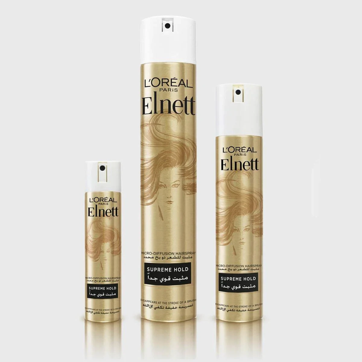 L'Oreal Paris Elnett Supreme Hold hairspray offers long-lasting hold with brilliant shine and a soft touch. Its micro-diffuser spray disappears at the stroke of a brush, leaving hair clean, soft, and shiny. Perfect for maintaining hairstyles even in humid conditions. Features