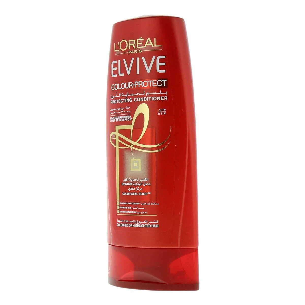 L'Oréal Paris Elvive Colour Protect Conditioner is designed for coloured or highlighted hair. It maintains colour intensity, protects hair from external aggressions, and prolongs radiance. Enriched with UVA/UVB filters and nourishing ingredients, it keeps hair vibrant and healthy. Features