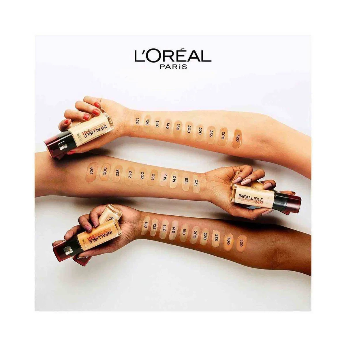 Talc, Zinc Stearate, Dimethicone, Zea Mays Starch/Corn Starch, Caprylic/Capric Triglyceride, Silica, Dimethicone/Vinyl Dimethicone Crosspolymer, Triethoxycaprylylsilane, Caprylyl Glycol, Ethylhexylglycerin, Potassium Sorbate, Parfum/Fragrance, Isoceteth-10, Alaria Esculenta Extract, Hexyl Cinnamal, Benzyl Salicylate, Linalool, Alpha-Isomethyl Ionone, Benzyl Alcohol, Citronellol, Tocopherol. May Contain: Ci 77891/Titanium Dioxide, Ci 77491, Ci 77492, Ci 77499/Iron Oxides, Mica Ci 19140/Yellow 5 Lake, Ci 77007/Ultramarines, Ci 15850/Red 7 Lake.L'Oreal Paris: Innovators in beauty care, offering expertise in makeup, skincare, hair care, and styling.Apply L'Oreal Paris Infallible 24H Foundation With A Make-Up Sponge Or Brush Onto The Whole Face, Including The Neck. Build Coverage As Needed.For external use only. Avoid contact with eyes. If irritation occurs, discontinue use.