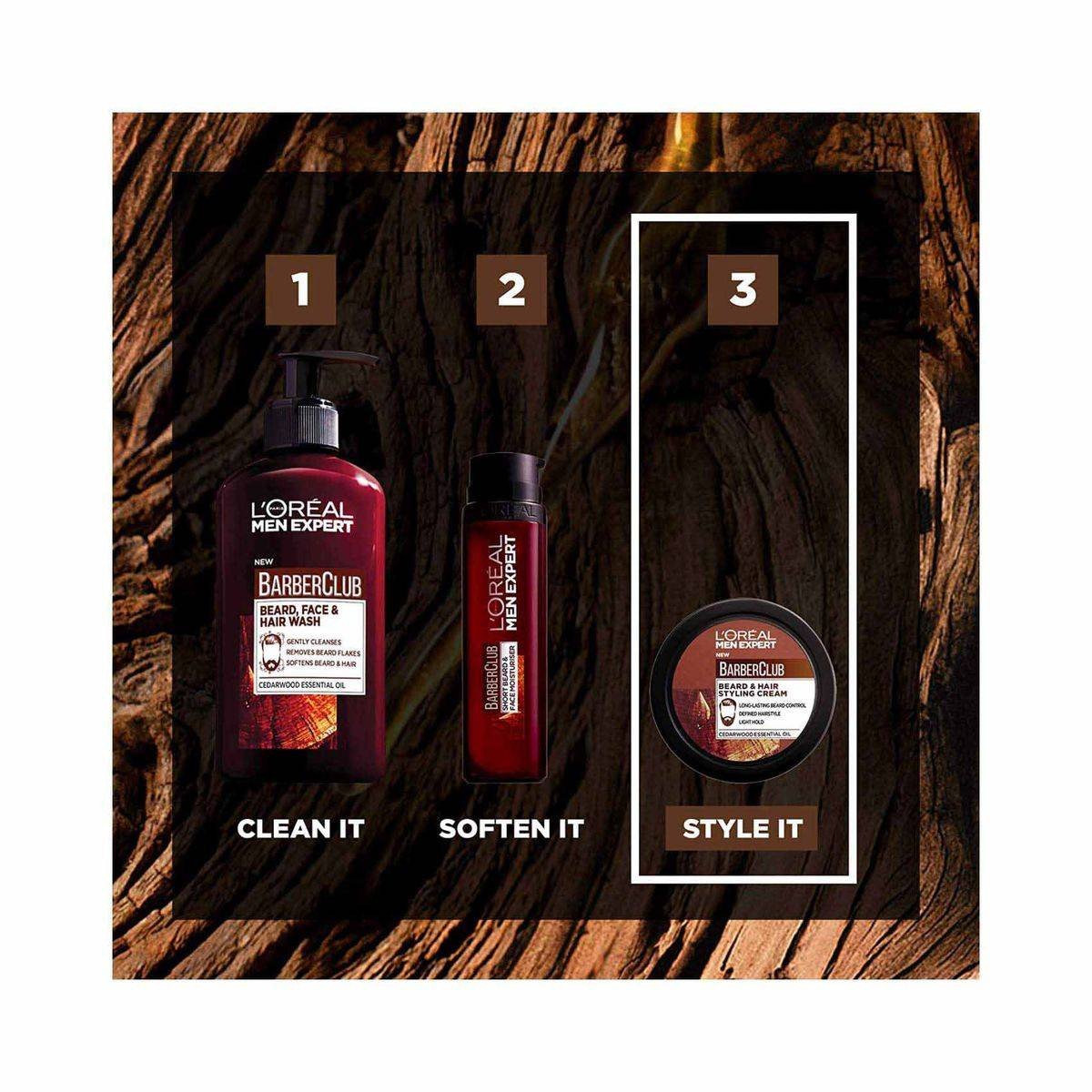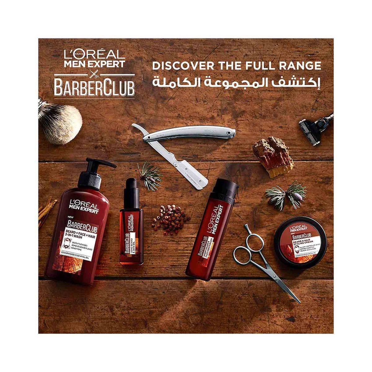 L'Oreal Paris Men Expert Barber Club Beard and Hair Styling Cream is enriched with cedarwood essential oil for all-day beard control and hairstyle definition. Ideal for daily grooming, it offers a light hold and a pleasant cedar scent. Key Features