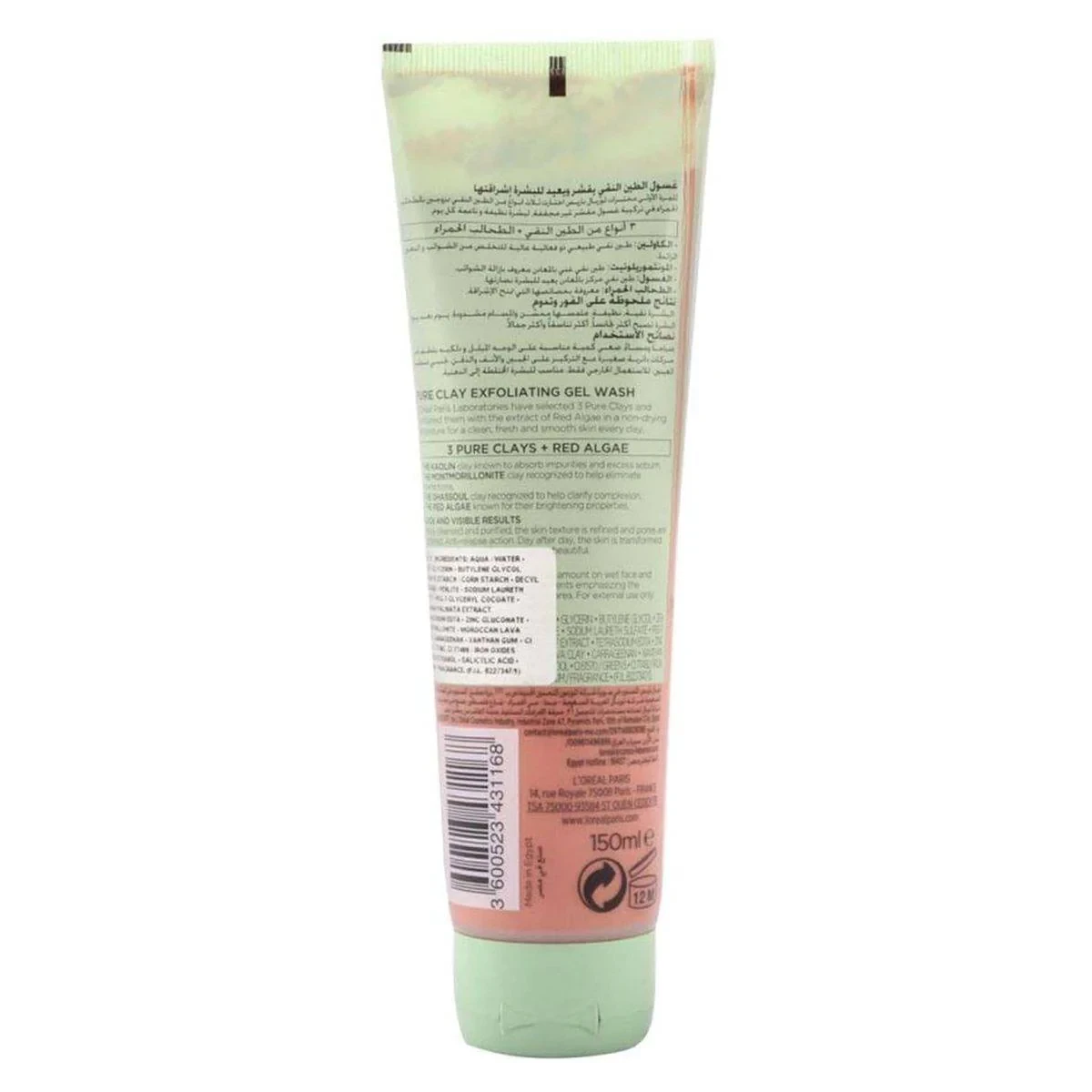 Aqua/Water, Glycerin, Butylene Glycol, Sodium Laureth Sulfate, Kaolin, Montmorillonite, Red Algae Extract, Salicylic Acid, Glyceryl Cocoate, Sodium Chloride, Xanthan Gum, Citric Acid, Parfum/Fragrance, Phenoxyethanol, Caprylyl Glycol, Linalool, Limonene, CI 77491, CI 77492, CI 77499.Loreal Paris: Innovators in skincare and beauty, known for dermatologically tested products.Apply daily on wet face, massage gently, and rinse thoroughlyFor external use only.