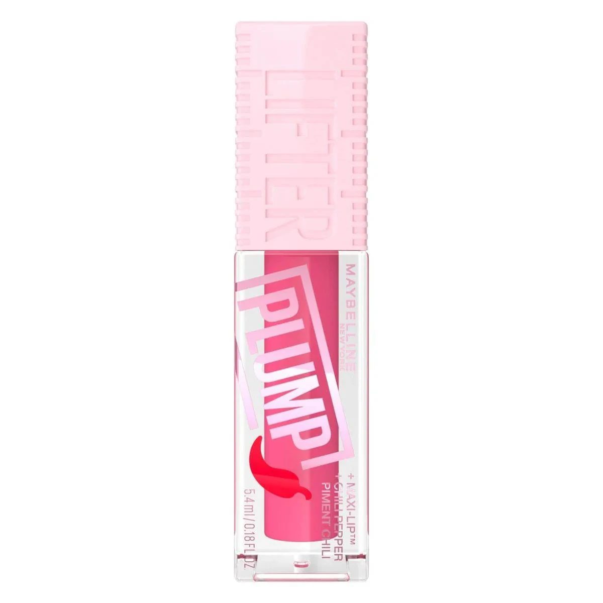 Maybelline Lifter Plump Lip Gloss 03 Pink Sting offers a volumizing effect with chili pepper extract for fuller lips. Its soft, blendable formula provides a glossy finish, ideal for daily wear. Features