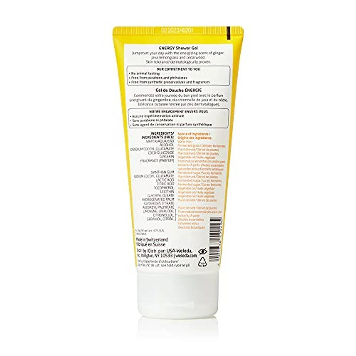 Weleda Aroma Energy Shower Gel is a refreshing body wash infused with ginger, java lemongrass, and cedarwood extracts. It gently cleanses while invigorating the senses, leaving skin feeling soft and revitalized. Free from parabens and synthetic fragrances, this shower gel supports skin's moisture balance and is perfect for a refreshing start to your day. Key Features Gently cleanses and uplifts normal skin Refreshing gel formula invigorates senses Free from parabens and phthalates Contains natural essential oils Supports skin's moisture levels Vegan and cruelty-free Certified natural by NATRUE Features energizing fragrance of ginger, lemongrass, and cedarwood Rinses clean No synthetic preservatives or fragrances Water (Aqua), Alcohol, Disodium Cocoyl Glutamate, Coco-Glucoside, Glycerin, Fragrance (Parfum), Xanthan Gum, Sodium Cocoyl Glutamate, Lactic Acid, Citric Acid, Tocopherol, Lecithin, Glyceryl Oleate, Hydrogenated Palm Glycerides Citrate, Ascorbyl Palmitate, Limonene, Linalool, Citronellol, Geraniol, Citral.Weleda: Pioneers in natural skincare since 1921, offering certified natural personal care products.Apply to body using hands or a loofah in a circular motion, then rinse off. Use daily.Free from parabens and phthalates.