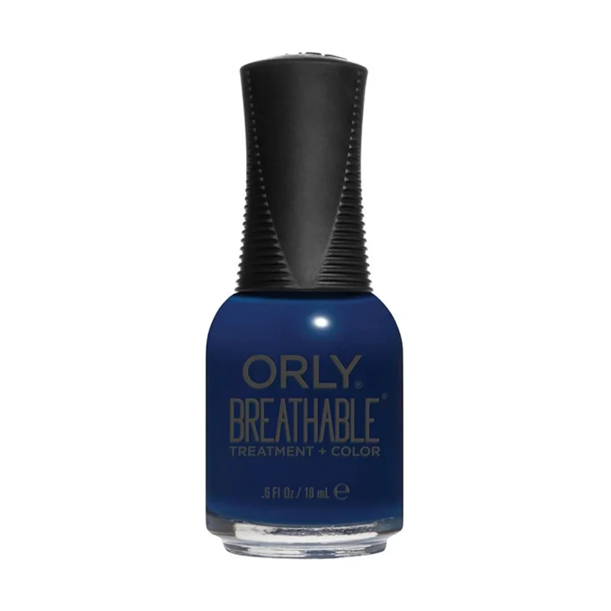 Good Karma - Breathable Treatment + Color is a rich dark blue crème with a smooth, full coverage and a deep, cool undertone. Shade : blue Undertone : neutral Coverage : full coverage Finish : creme Base: Butyl Acetate, Ethyl Acetate, Nitrocellulose, Acetyl Tributyl Citrate, Isopropyl Alcohol. Treatment: Argan Oil, Pro-Vitamin B5, Vitamin C. Colorants: May Contain cosmetic pigments.ORLY is a nail care brand that offers a range of professional nail polishes, with its signature being the Breathable line, which is a nourishing, oxygen-permeable polish that can be worn without a base or top coat. The brand is known for its high-pigment, long-lasting formulas, and professional-grade products, including treatments and a new LED gel system, that are also vegan and cruelty-free.One-Step System: Cleanse the nail plate to remove oils. Apply 2 thin, even coats of color. No base coat or top coat is needed. Allow to dry thoroughly.Flammable. Keep away from heat, sparks, and open flame. For external use on nails only. Avoid eye contact. Keep out of reach of children.
