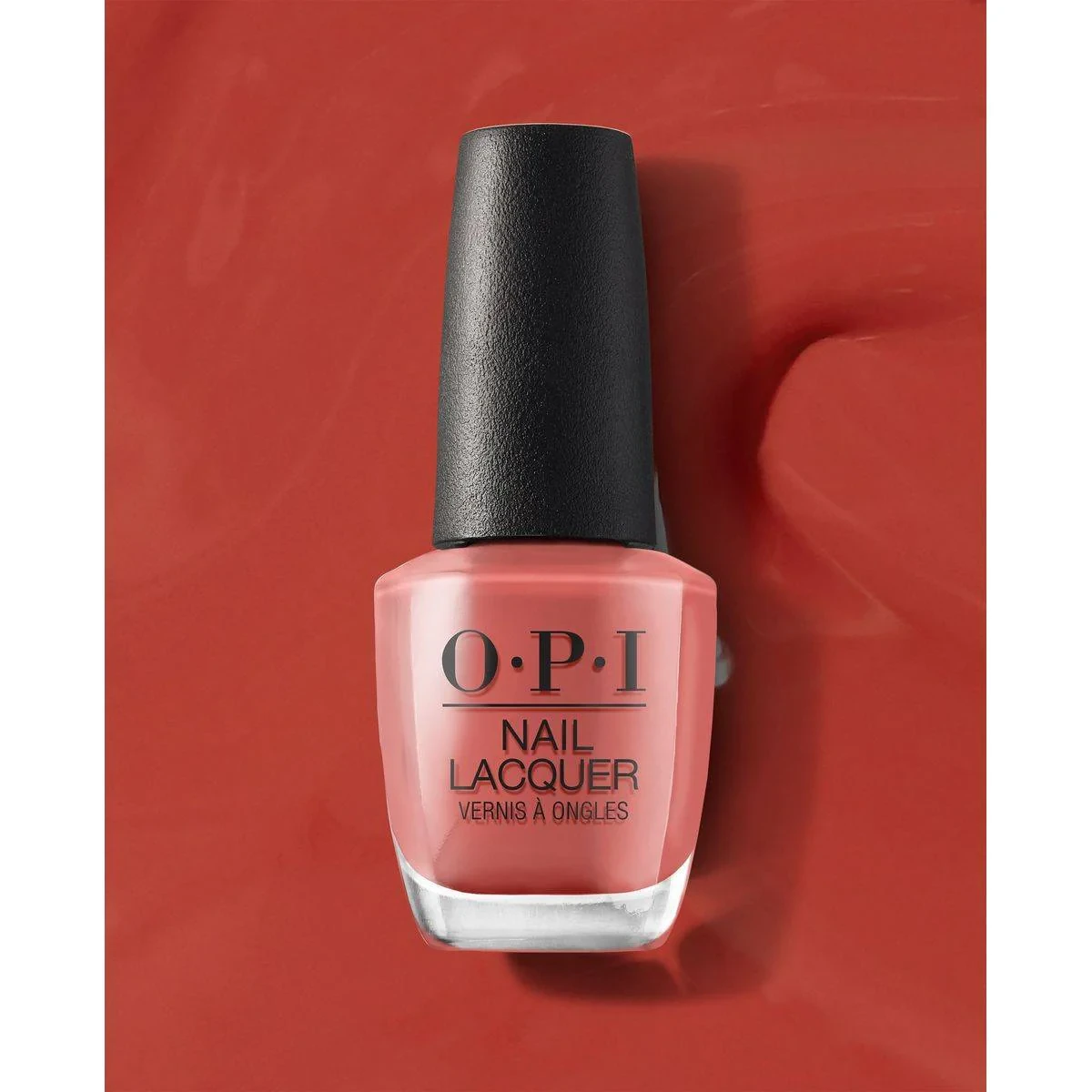 Carry a touch of summer sun into crisp fall days and cozy nights with this shade - perfect for Fall Nails. Get shine and compliments for days. Nail Lacquer is OPI's original nail polish formula. Use your nail polish shade with OPI Base Coat and OPI Top Coat for extended wear. Made in the USA. Tick Tock, this burnt red nail polish color rocks! Key Ingredients: Ethyl Acetate, Butyl Acetate, Nitrocellulose, Acetyl Tributyl Citrate, Isopropyl Alcohol, Stearalkonium Bentonite, Acrylates Copolymer, Polymer Resins, Titanium Dioxide (CI 77891), Colorants (Pigments specific to each shade).OPI is a global professional nail care brand. These are the brand's original, widely known, chip-resistant nail polishes.Apply 1-2 coats over a base coat (sold separately). Finish with a top coat (sold separately).FLAMMABLE. Keep away from heat and open flame. For external use only.