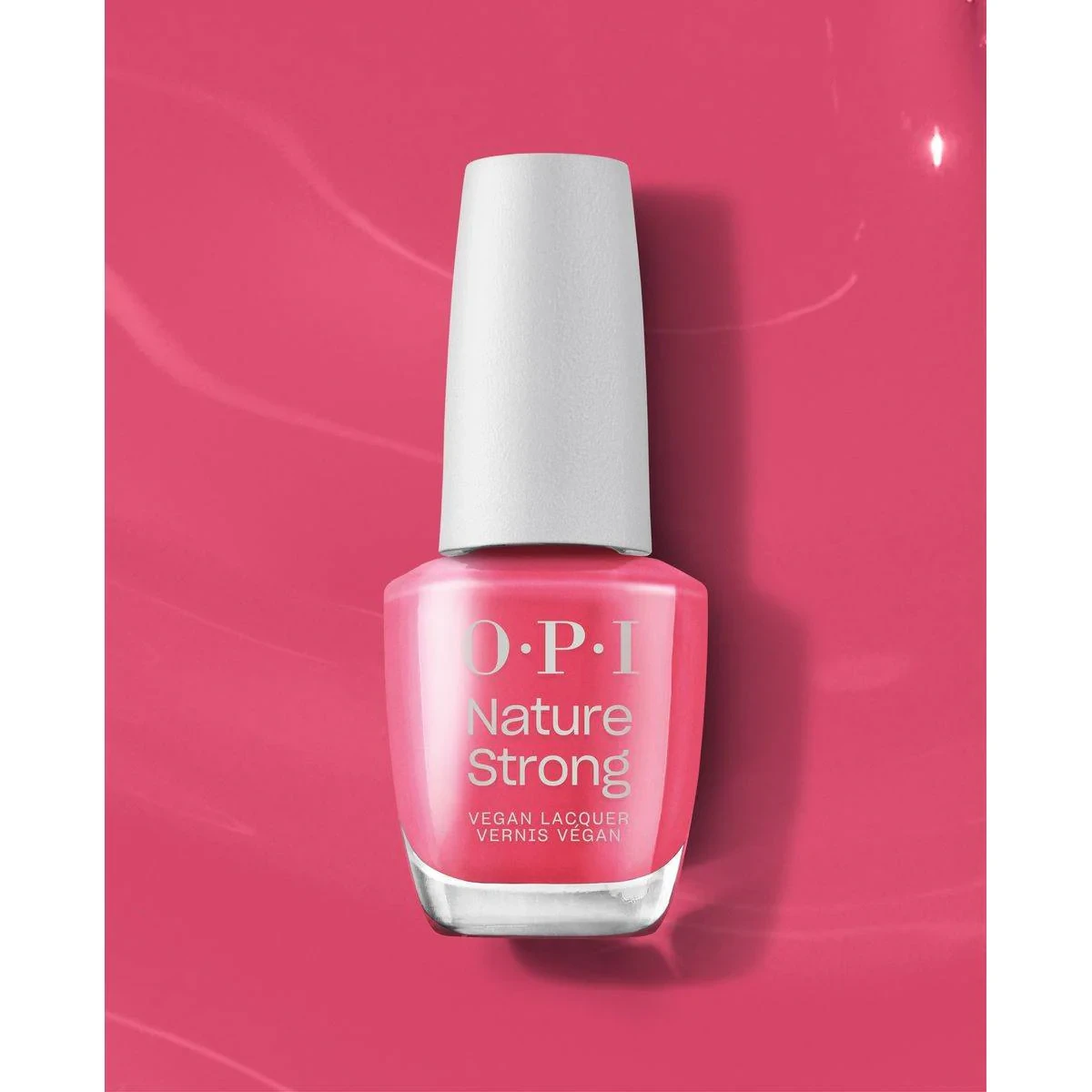 OPI Nature Strong Vegan Lacquer offers a vibrant pink hue with a vegan formula. Perfect for eco-conscious beauty enthusiasts seeking long-lasting color. Key Features Vegan lacquer formula Long-lasting color High-shine finish 15ml bottle Key Ingredients: Ethyl Acetate, Butyl Acetate, Nitrocellulose, Plant-Based Polymers (Up to $75%$ natural origin), Acetyl Tributyl Citrate, Isopropyl Alcohol, Stearalkonium Bentonite, Bamboo Extract, Tocopherol (Vitamin E), Colorants (Pigments specific to each shade).OPI Nature Strong is the brand's line of vegan, natural-origin nail lacquers.Apply 1-2 coats over base coat. Finish with Nature Strong Top Coat (sold separately).FLAMMABLE. Keep away from heat and open flame. For external use only.