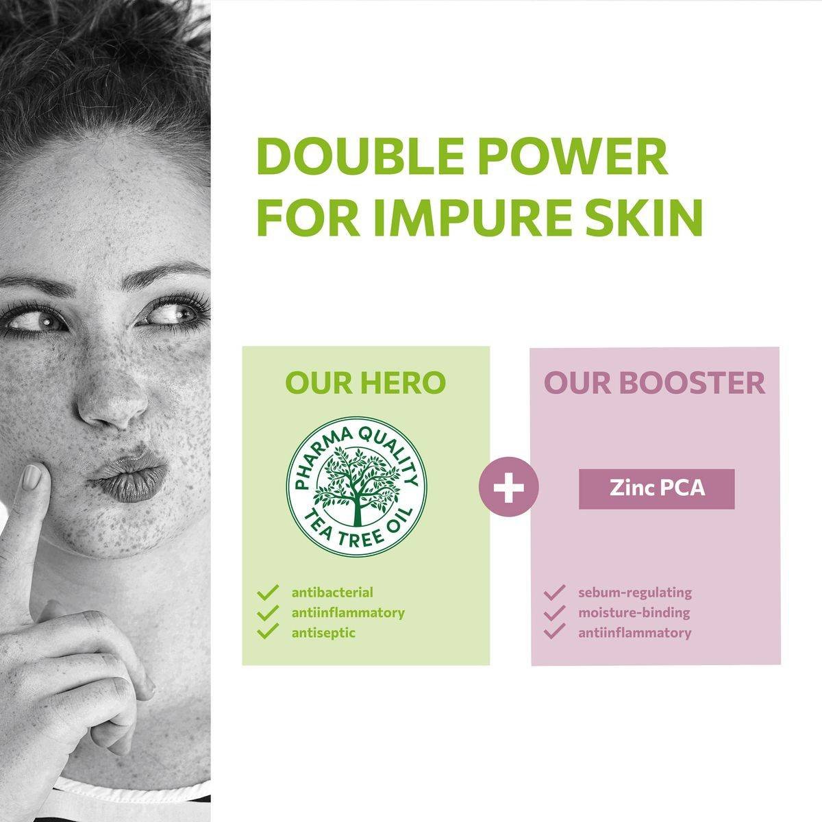 Alkmene Tea Tree Oil 3-in-1 Cleansing Peeling Mask offers deep pore cleansing, exfoliation, and sebum regulation. Infused with tea tree oil and Zinc PCA, it reduces pimples and refines skin texture. Vegan and microplastic-free, it's suitable for all skin types. Key Features Deep pore cleansing Regulates sebum production Reduces shine Non-comedogenic Vegan and microplastic-free Contains tea tree oil and zinc PCA Antibacterial and anti-inflammatory Suitable for acne-prone skin