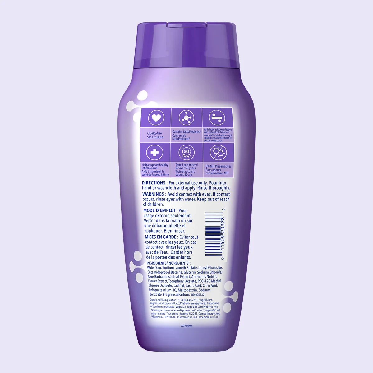 Vagisil Intimate Wash is formulated to maintain a healthy pH balance with LactoPrebiotic. It provides up to 24-hour freshness and is ideal for sensitive skin. Dermatologist and gynecologist tested, it supports intimate skin health without disrupting natural pH. Features Clinically proven to help maintain a healthy pH Contains LactoPrebiotic Hypoallergenic Gynecologist tested Provides up to 24-hour freshness Supports healthy intimate skin Dye-free Gentle on sensitive skin Water, Sodium Laureth Sulfate, Lauryl Glucoside, Cocamidopropyl Betaine, Glycerin, Sodium Chloride, Aloe Barbadensis Leaf Extract, Anthemis Nobilis Flower Extract, Tocopheryl Acetate, PEG-120 Methyl Glucose Dioleate, Lactitol, Lactic Acid, Citric Acid, Polyquaternium-10, Maltodextrin, Sodium Benzoate, Fragrance.Vagisil: Experts in intimate health, offering clinically proven solutions for pH balance and freshness.For external use only. Pour into hand or washcloth and apply. Rinse thoroughly.For external use only. Avoid contact with eyes. If contact occurs, rinse eyes with water. Keep out of reach of children.