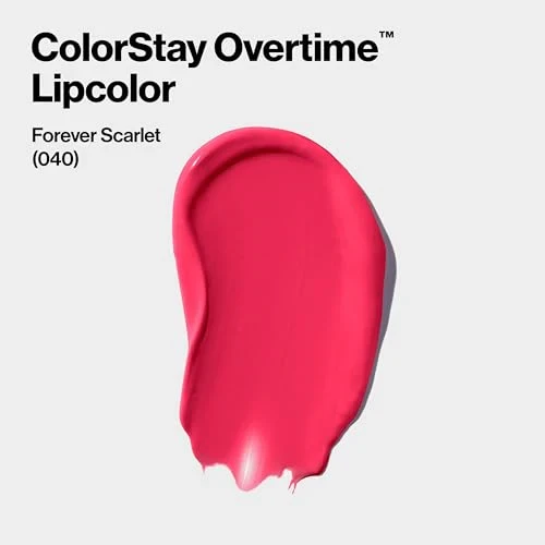 Revlon ColorStay Overtime Lip Color provides vibrant, long-lasting color for up to 16 hours. The dual-ended applicator includes a moisturizing topcoat with Vitamin E, chamomile, and soy extract for added comfort and shine. Ideal for all-day wear without smudging or feathering. Key Features
