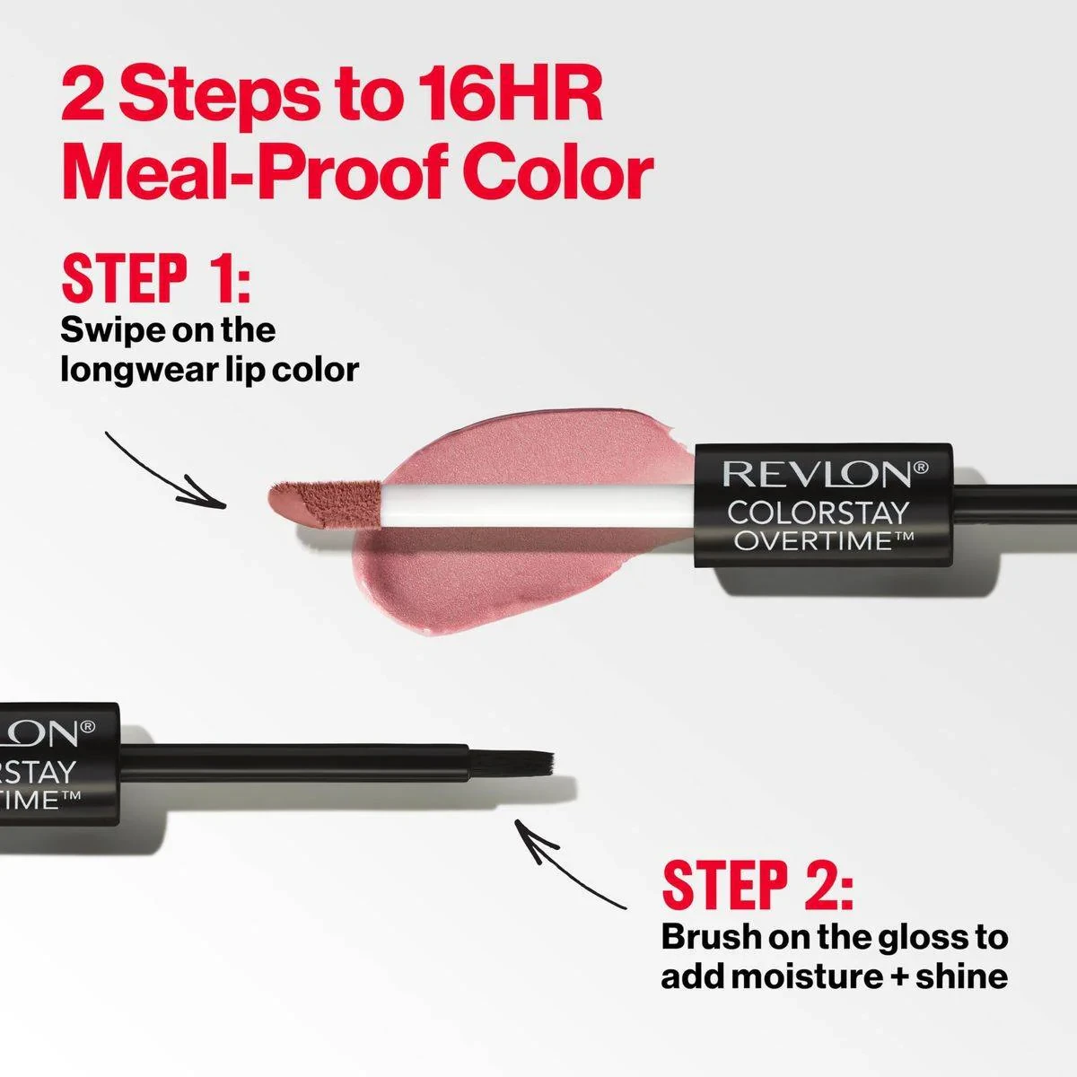 Revlon ColorStay Overtime Lip Color offers vibrant, long-lasting color with a glossy finish. Infused with Vitamin E and chamomile for added moisture, it stays put for up to 16 hours without smudging or feathering. Perfect for all-day wear, this dual-ended lip color provides a sleek, shiny look. Key Features