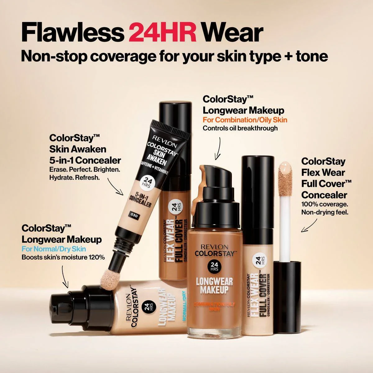 Revlon ColorStay Flex Wear Full Cover Concealer offers 24-hour wear with full coverage. Infused with Hyaluronic Acid and Vitamin E, it hydrates and nourishes the skin while concealing imperfections. The Adapti-Flex Technology ensures a comfortable, breathable feel. Available in multiple shades for a perfect match. Key Features