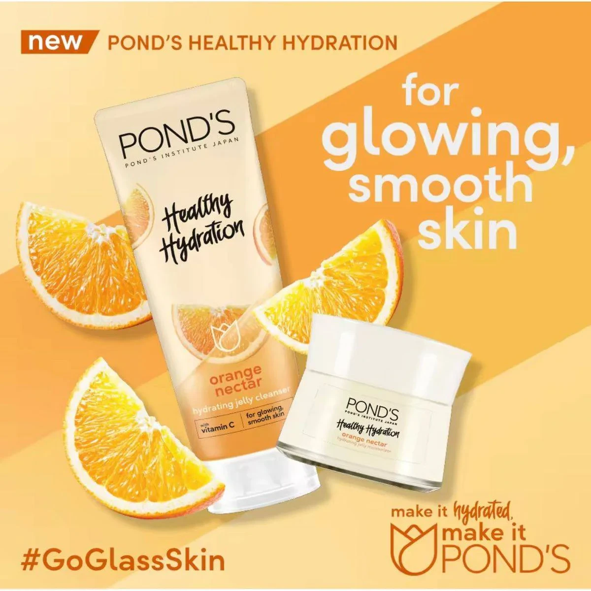 Water, Sodium Cocoyl Glycinate, Glycerin, Hydroxypropyl Starch Phosphate, Sodium Lauroamphoacetate, Acrylates Copolymer, Sodium Chloride, Decyl Glucoside, Lauramidopropyl Betaine, Phenoxyethanol, Fragrance, Caprylyl Glycol, Coconut Acid, Polyquaternium-6, Citric Acid, PEG-150 Distearate, Stearic Acid, Propylene Glycol, Tetrasodium EDTA, Benzophenone-4, BHT, Sodium Hydroxide, Niacinamide, Trideceth-9, Citrus Aurantium Dulcis (Orange) Juice, Bisabolol, Sodium Carbonate, Sodium Sulfate, Benzyl Alcohol, Benzyl Salicylate, Hexyl Cinnamal, Limonene, CI 15510.Pond's: Experts in skincare, known for hydrating and brightening products with natural ingredients.Apply a pea-sized amount on your skin, massage with water on your face and neck, then rinse off. Recommended for use twice a day.Wash with water if applied to eyes.