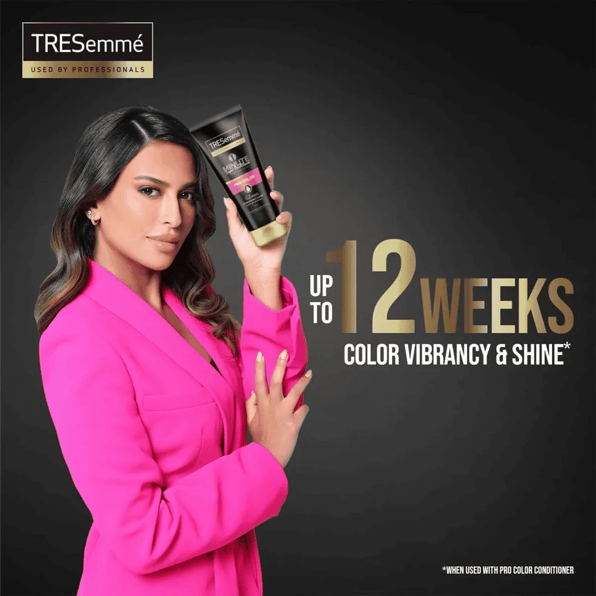 This 1 Minute Super Conditioner from TRESemmé provides intense moisturization and repairs damage done by hair coloring. Formulated with Shineplex Technology & Hyaluronic Acid, it offers up to 12 weeks of color vibrancy and shine. Ideal for dry and damaged hair, this sulphate-free, paraben-free, and dye-free formula transforms your hair into a shiny, vibrant mane. b Key Features Intense moisturization Repairs damage from hair coloring Shineplex Technology & Hyaluronic Acid Up to 12 weeks of color vibrancy & shine Sulphate-free formula Paraben-free formula Dye-free formula Shineplex Technology™, Hyaluronic Acid, Camellia Oil.This 1 Minute Super Conditioner from TRESemmé provides intense moisturization and repairs damage done by hair coloring. Formulated with Shineplex Technology & Hyaluronic Acid, it offers up to 12 weeks of color vibrancy and shine. Ideal for dry and damaged hair, this sulphate-free, paraben-free, and dye-free formula transforms your hair into a shiny, vibrant mane.Apply After Shampooing, Leave For 1 Minute, Then Rinse. Use Frequently For Fast And Deep Conditioning.For External Use Only, Avoid Contact With Eyes.