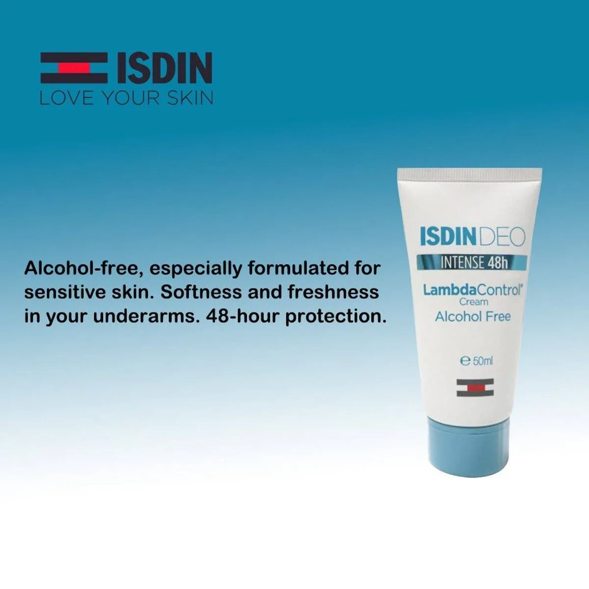 ISDIN Deodorant Lambda Control Intense 48 Hour Cream is an alcohol-free deodorant designed for sensitive skin. It offers 48-hour protection against sweat and odor, ensuring long-lasting freshness. The gentle formula helps reduce perspiration while maintaining skin hydration, making it suitable for daily use. Key Features