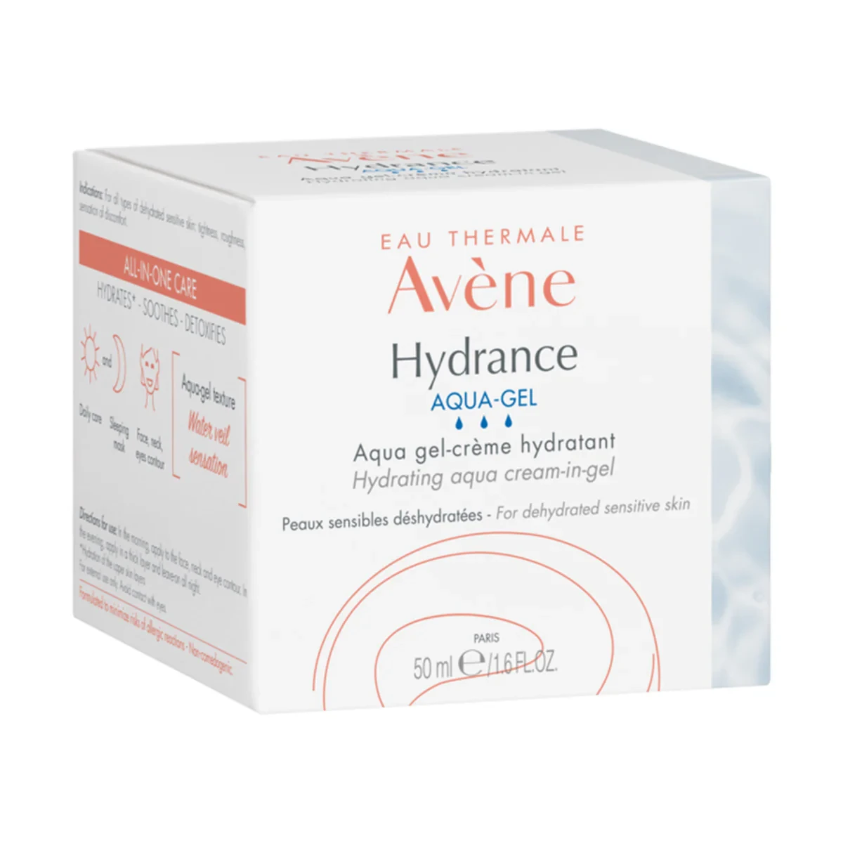 A complete skincare that intensely hydrates and soothes the skin in only one step thanks to its patented active complex CohedermTM associated to the Avène Thermal Spring Water. Supplemented in Provitamin E (Pre-tocopheryl) and dextran sulfate with antioxidant and detoxifying properties, it helps the skin to fight free radical attacks and maintain a rested and fresh looking complexion. Its very fresh aqua-gel texture offers to the skin a delicate water-veil sensation. More supple, the skin is comfortable and radiant. Avene Thermal Spring Water, Cohederm Complex, Glycerin.Avène's Hydrance line offers refreshing hydration in a multi-use gel-cream format.Application: Apply morning and evening to the face and neck. Can be used as a mask or daily moisturizer.For external use only. Avoid contact with eyes.