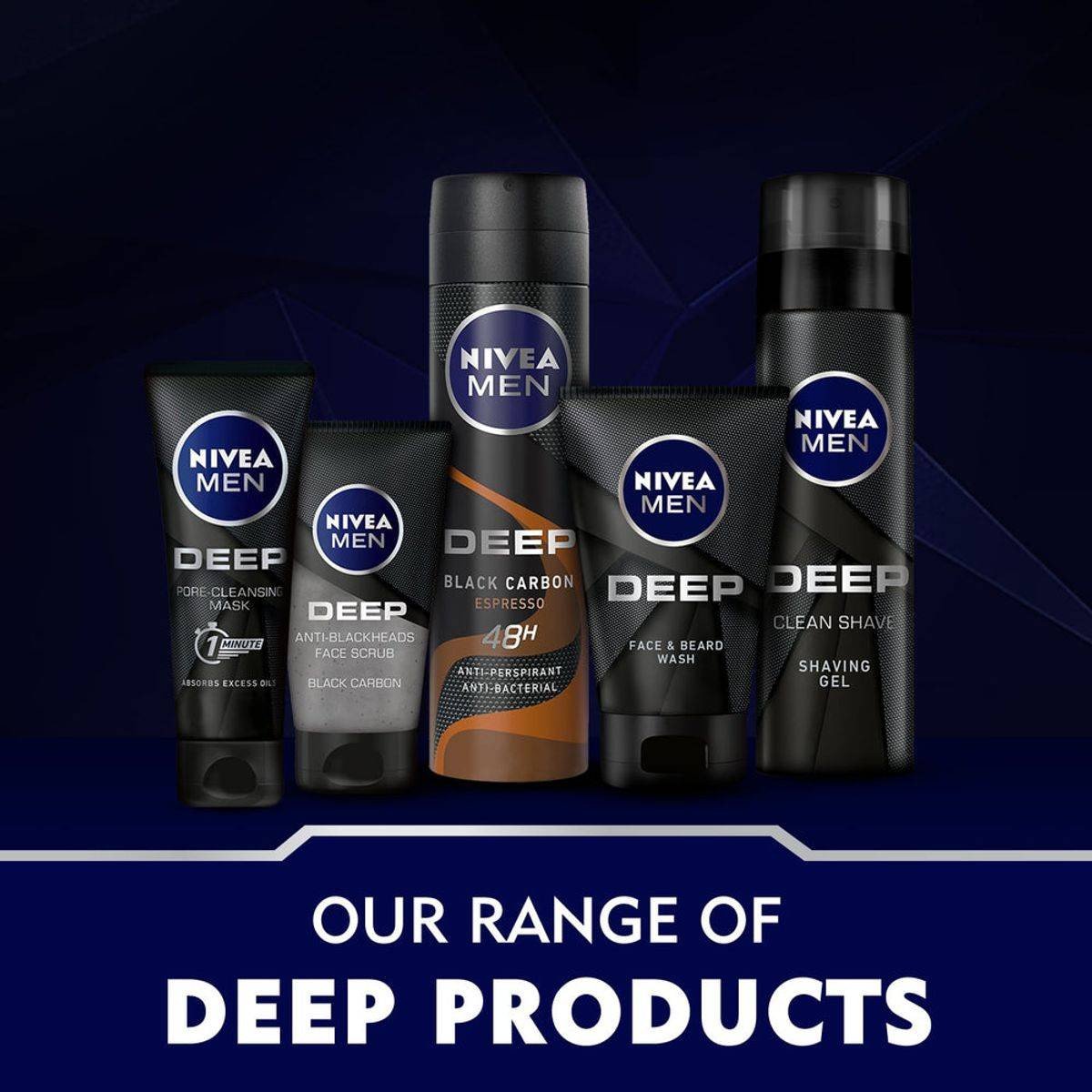 Nivea Men Deep Aftershave Lotion features an antibacterial formula with black carbon. It comforts the skin after shaving, prevents dryness, and supports quick recovery. Dermatologically approved for skin compatibility. Features Antibacterial formula with black carbon Comforts skin after shaving Prevents skin dryness Woody, masculine fragrance Dermatologically approved Aqua, Alcohol Denat., Propylene Glycol, PEG-40 Hydrogenated Castor Oil, Limonene, Linalool, Alpha-Isomethyl Ionone, Coumarin, Geraniol, Citronellol, Parfum.Nivea Men: Dermatologically approved skincare for men, specializing in comfort and protection.Apply liberally on the shaved area, avoid eye areaDo not use it when the seal is broken and stop using it if any allergic reactions occur.