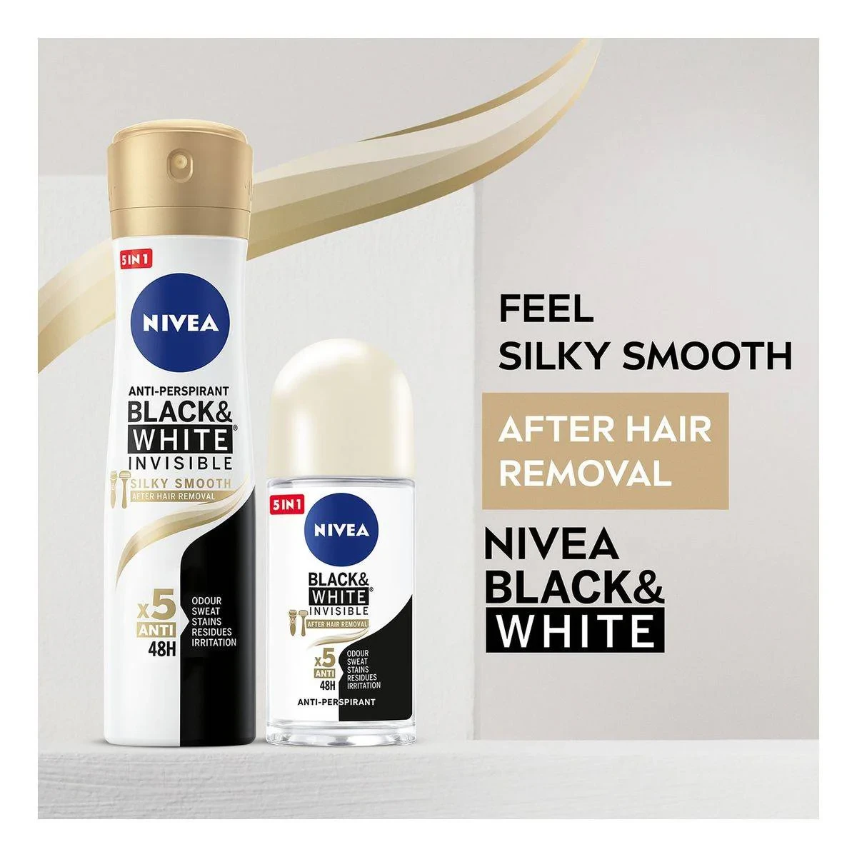 NIVEA Women Deodorant Spray Silky Smooth offers 48-hour protection against sweat and odor. Its innovative formula ensures black stays black and white stays white longer, while caring for your skin. Key Features 48-hour antiperspirant protection Anti-odour, anti-sweat, anti-stains Gentle on skin No ethyl alcohol Patented stain protection Suitable after hair removal Butane, Isobutane, Propane, Cyclomethicone, Aluminum Chlorohydrate, C12-15 Alkyl Benzoate, Isopropyl Palmitate, Palmitamidopropyltrimonium Chloride, Octyldodecanol, Propylene Glycol, Disteardimonium Hectorite, Propylene Carbonate, Dimethiconol, Benzyl Alcohol, Alpha-Isomethyl Ionone, Citronellol, Benzyl Salicylate, Parfum.NIVEA: Trusted skincare brand known for innovative antiperspirant solutions.Apply evenly on underarms for 48-hour protection.Avoid contact with eyes. In case of contact with eyes, rinse immediately with plenty of water and seek medical advice.
