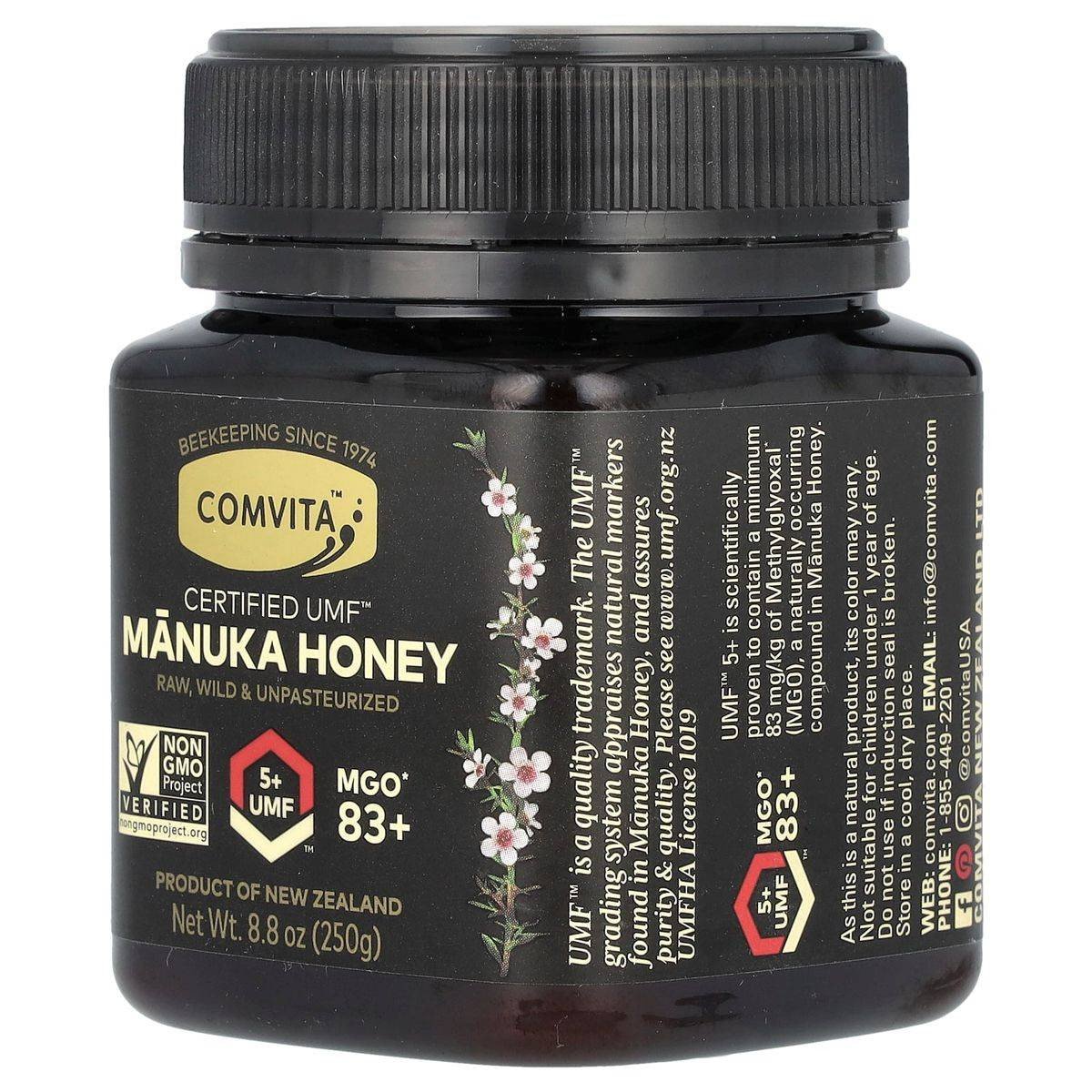 Comvita Manuka Honey UMF 5+ is a raw, wild, and unpasteurized honey from New Zealand. Certified by the UMF Honey Association, it contains MGO 83+, supporting immune health and digestive wellness. Key Features Raw, wild & unpasteurized Certified UMF™ 5+ Non-GMO Project Verified Product of New Zealand Contains MGO 83+ Supports immune system Rich in natural compounds Suitable for wellness rituals UMF™ 5+ Monofloral Manuka Honey.Comvita: Pioneers in Manuka Honey, offering raw, wild, and unpasteurized honey since 1974.Not SpecifiedNot suitable for children under 1 year of age.