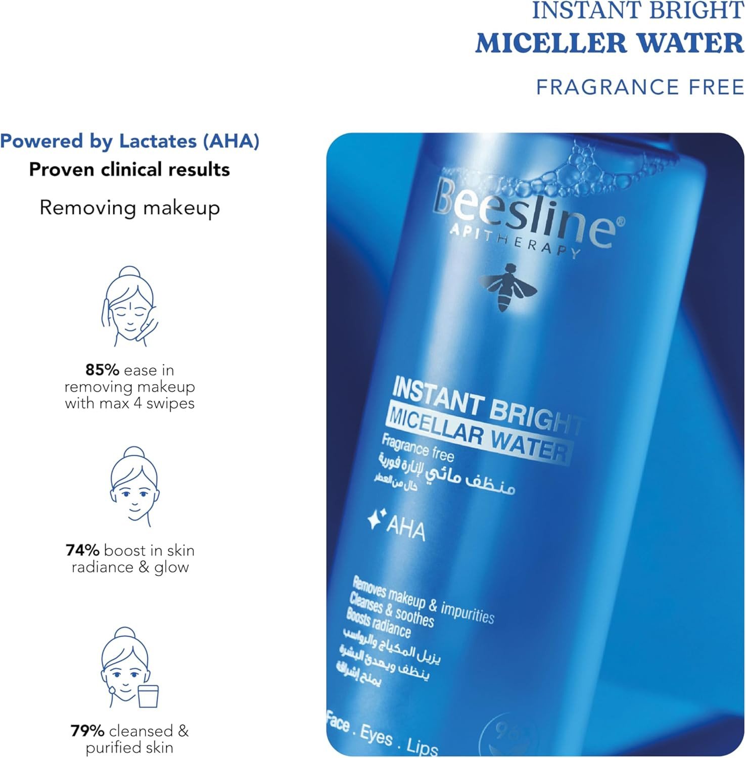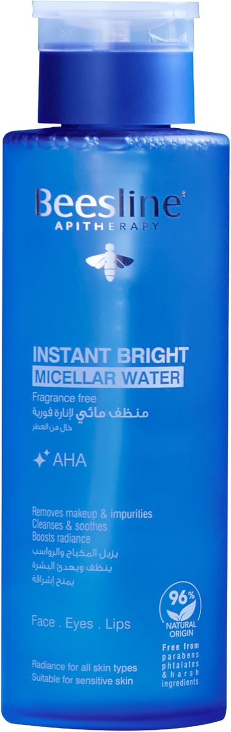 Beesline 3 In 1 Micellar Cleansing Water is a fragrance-free solution that removes makeup, cleanses, and soothes skin. Ideal for sensitive skin, it draws out impurities without over-drying. Key Features Removes makeup and impurities Cleanses and soothes skin Suitable for sensitive skin Non-greasy and absorbs quickly Controls oil production Minimizes breakouts Lightweight formula Fragrance-free Chamomile Extract, Cucumber Extract, Micellar Technology, Natural Origin Ingredients, Free From Parabens And Phthalates.Beesline offers natural skincare solutions, specializing in fragrance-free products for sensitive skin.Use To Remove Regular Makeup: Mascara, Eyeliner, Lipstick, Foundation. For Eye Makeup: Soak A Cotton Pad With The Micellar Water, Press Against Closed Eyes For A Few Seconds, Gently Wipe Without Harsh Rubbing. Rinsing Is Optional.For external use only. Avoid contact with eyes.