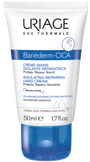 Uriage Bariederm Cica Hand Cream is a barrier cream designed for very dry hands. It insulates, repairs, and nourishes, providing water-resistant protection. Ideal for daily use. Key Features