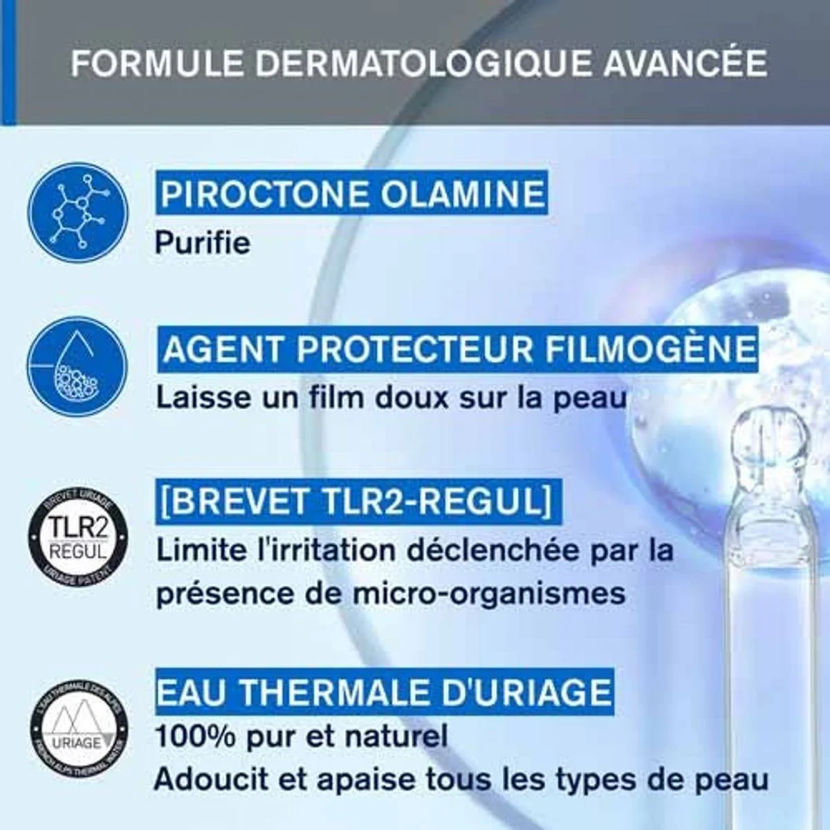 AQUA (WATER, EAU), SODIUM LAURETH SULFATE, SODIUM COCOAMPHOACETATE, BUTYLENE GLYCOL, DECYL GLUCOSIDE, SODIUM CHLORIDE, SODIUM LAURETH-8 SULFATE, ZINC COCETH SULFATE, SODIUM LAUROYL GLUTAMATE, SODIUM METHYL COCOYL TAURATE, SODIUM MYRISTOYL SARCOSINATE, COCO-GLUCOSIDE, GLYCERYL OLEATE, LACTIC ACID, PEG-120 METHYL GLUCOSE DIOLEATE, PIROCTONE OLAMINE, MAGNESIUM LAURETH SULFATE, SODIUM OLETH SULFATE, MAGNESIUM LAURETH-8 SULFATE, BENZOIC ACID, COPPER GLUCONATE, MANGANESE GLUCONATE, MAGNESIUM OLETH SULFATE, COCETH-3, PHYTOSPHINGOSINE, ASIATICOSIDE, CI 42090 (BLUE 1).Uriage: Dermatological skincare brand known for its gentle, hypoallergenic products enriched with Uriage Thermal Water.Face and Body: Use once or twice a day. Lather on wet skin, leave briefly, then rinse well. Avoid contact with eyes.Avoid contact with the eyes.