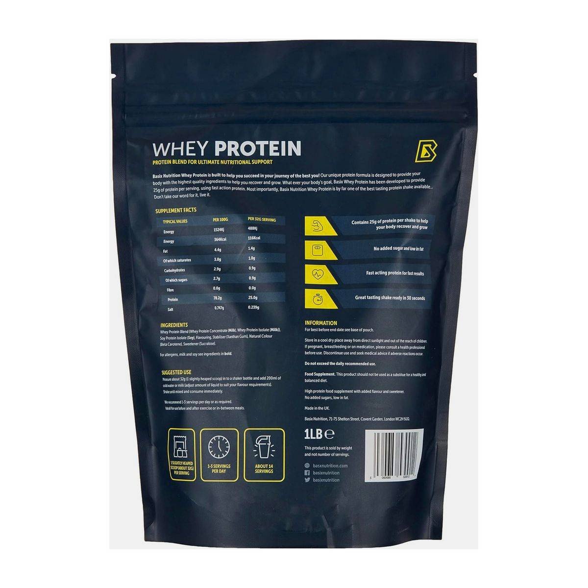 Basix Muscle Whey Protein Strawberry Swirl offers 25g of protein per serving, supporting muscle growth and recovery. Low in sugar and calories, it's perfect for fitness enthusiasts. Features 25g Protein per serving 0.9g Sugar per serving Contains all nine essential amino acids Low calorie: 1.4g fat, less than 1g carbs, 116 calories per serving Fast acting protein for fast results Great tasting shake ready in 30 seconds Whey Protein Concentrate, Soy Protein Isolate, Whey Protein Isolate, Flavouring, Xanthan Gum, Sucralose.Basix is known for its high-quality protein supplements, offering simple ingredients for effective muscle growth and recovery.Add 32g (one slightly heaped scoop) in 200ml of water or milk. Keep chilled and consume within 3 hours.Keep out of reach of children. Store in a cool, dry place.