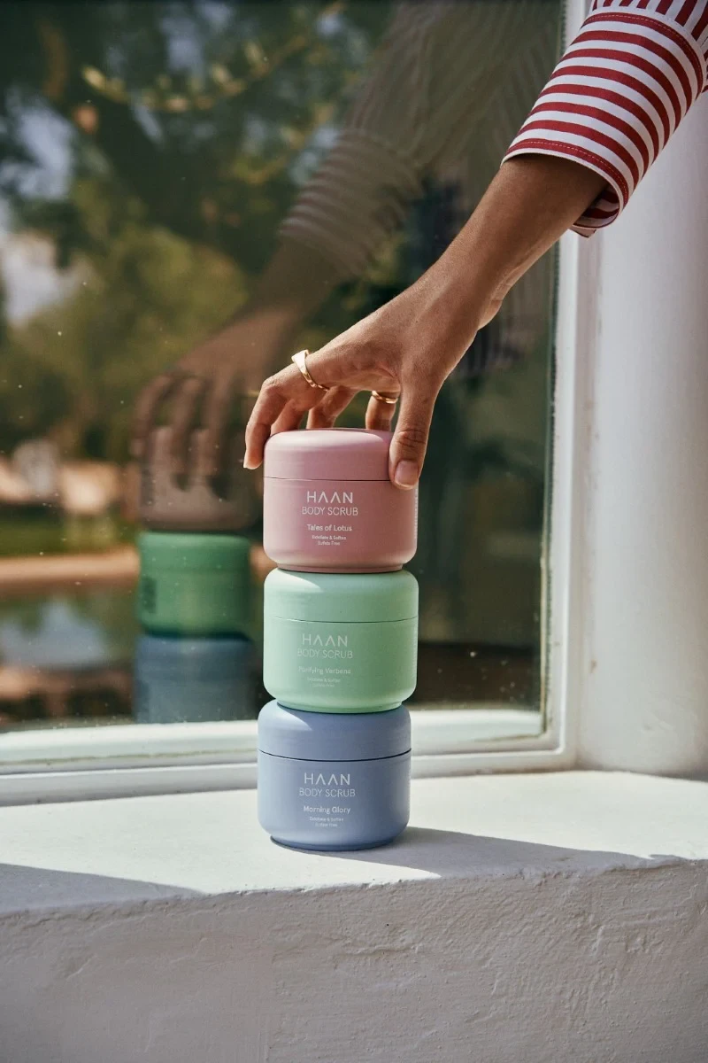 Haan Body Scrub Tales Of Lotus is an exfoliating gel designed to deeply cleanse and rejuvenate the skin. Enriched with natural ingredients like pumice and cranberry seeds, it effectively removes impurities, promotes cell renewal, and refines pores, leaving the skin smooth and soft. Ideal for all skin types, this sulfate-free scrub is perfect for a refreshing weekly skincare routine. Key Features Exfoliating gel with natural ingredients Deeply cleanses and refines pores Promotes cell renewal Leaves skin smooth and soft Contains pumice and cranberry seeds Suitable for all skin types Floral scent with lotus and white fig Sulfate-free and vegan Aqua(Water), Pumice, Glycerin, Decyl Glucoside, Xanthan Gum, Hydroxyacetophenone, Cocamidopropyl Betaine, Sodium Lauroyl Sarcosinate, Aloe Barbadensis Leaf Juice, Vaccinium Macrocarpon (Cranberry) Fruit Powder, Potassium Sorbate, Parfum(Fragrance), Caprylyl Glycol, 1,2 Hexanediol, Guar Hydroxypropyltrimonium Chloride, Inulin, Sclerotium Gum, Algin, Phytic Acid, Limonene, Sodium Benzoate, Linalool, Fructose, Citric Acid.HAAN is a personal care brand committed to reshaping the landscape of self care. With a steadfast dedication to sustainability and elegance, these meticulously crafted products elevate everyday routines.Apply to damp skin, gently massage over your body and rinse off with plenty of water. Use once or twice a week for smooth skin.Not Suitable For Children Under 12 Years.