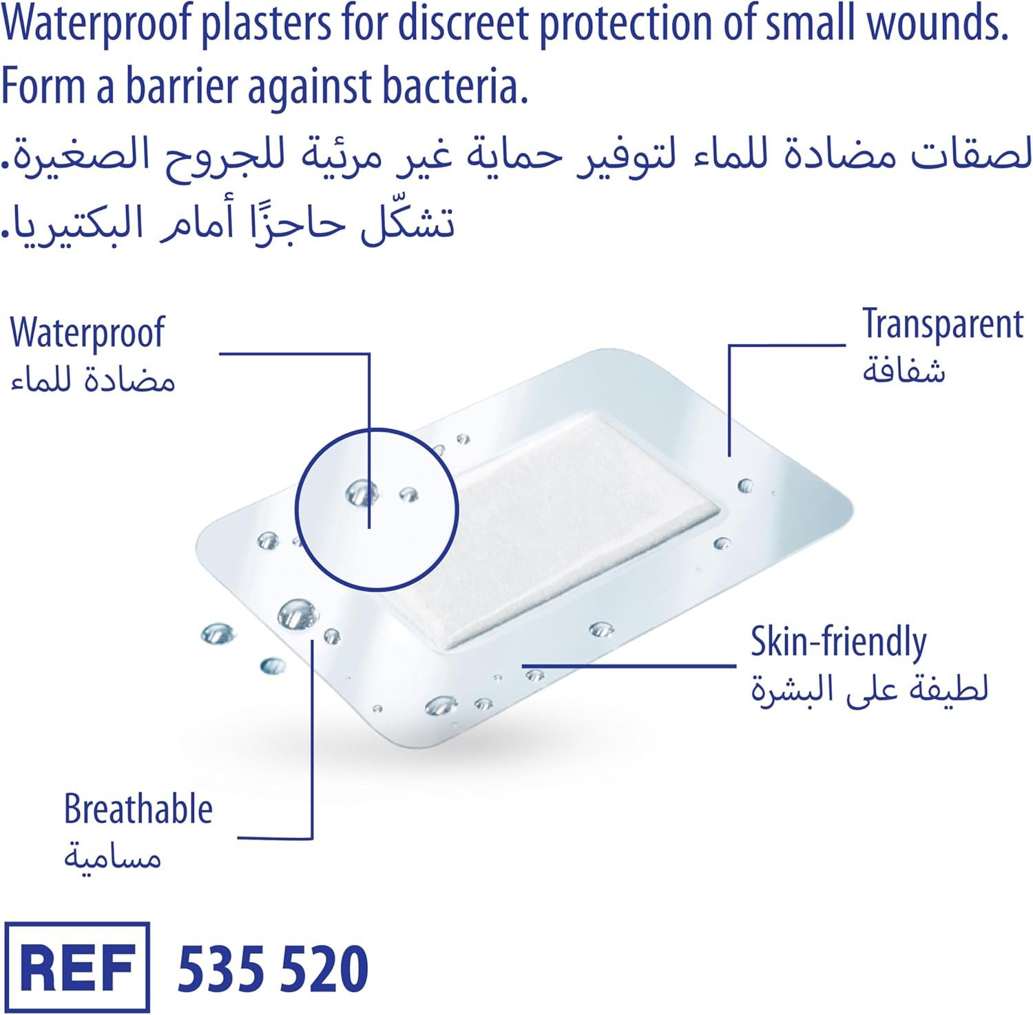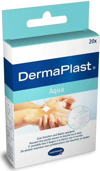 DermaPlast Aqua Plasters are waterproof and breathable, ideal for protecting small wounds during daily activities. Made from transparent polyurethane film, they offer discreet protection while allowing the skin to breathe. Available in three sizes, these plasters are perfect for use in the shower, bath, or pool. Key Features Waterproof protection Breathable material Skin-friendly adhesive Transparent design Non-stick wound pad Transparent, waterproof material. Breathable, non-stick wound pad, skin-friendly adhesive.Dermaplast is a brand of first aid and wound care products, primarily known for plasters (bandages). While specific details for all Dermaplast products were not available, the brand is associated with general-purpose wound protection and care products. Note: In some regions, a product called Dermoplast is a medicated topical anesthetic spray for pain relief, but based on your product titles, this brand refers to first-aid plasters.Application: Apply the plaster so the pad completely covers the wound. Gently mould the plaster edges to ensure optimum adhesion.Only apply if the pad completely covers the wound. In cases of diabetes mellitus, always consult a doctor before using plasters. Keep out of reach of children. Consult a doctor if infection signs occur.