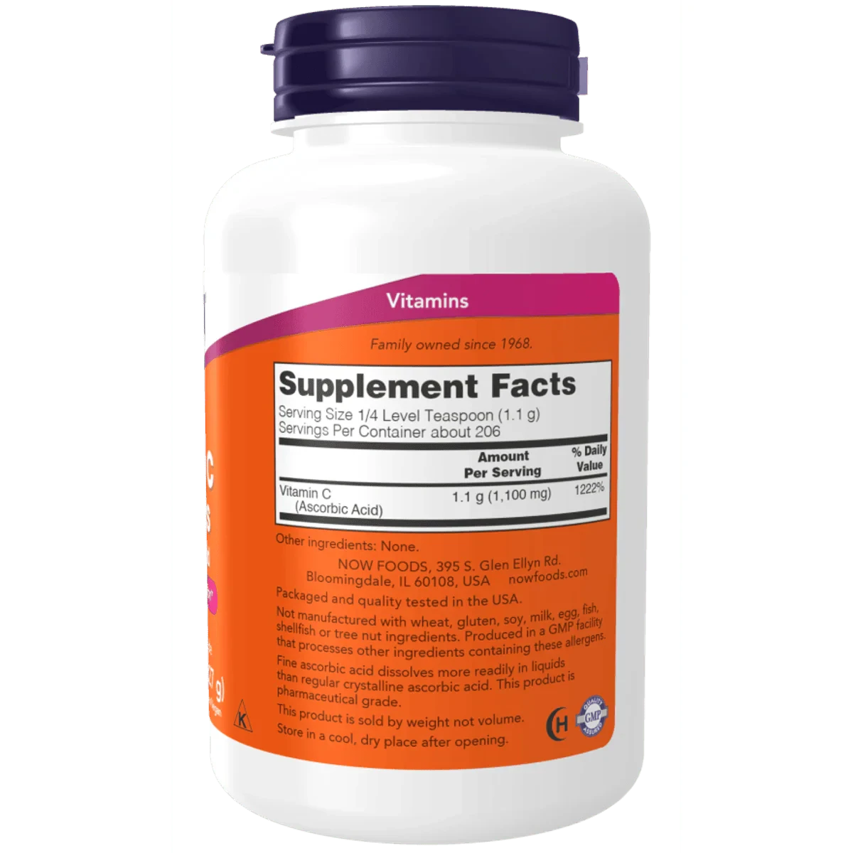 NOW Vitamin C Powder is a pharmaceutical-grade supplement that supports immune health and provides antioxidant protection. Made from pure ascorbic acid, it is suitable for vegetarians and vegans. Ideal for enhancing skin, bone, and joint health. Key Features Pure Vitamin C powder Pharmaceutical grade Non-GMO Vegan/Vegetarian Supports immune health Antioxidant protection Easy to dissolve in liquids Free from common allergens Support immune system function and helps maintain cellular health.Now Vitamin C Powder 227gServing Size: 1/4 Level Teaspoon (1.1 g) Vitamin C (Ascorbic Acid) 1.1 g (1,100 mg)Vitamin C is a water soluble nutrient well known for its vital role in the immune system. Vitamin C is also necessary for the production of collagen (a structural protein in connective tissue) and is therefore important for skin, bone, and joint health. Vitamin C is needed for amino acid metabolism, neurotransmitter synthesis, and the utilization of many nutrients, such as folic acid and iron. It is also a highly effective antioxidant that can help maintain healthy tissues by neutralizing free radicals generated during normal metabolism and exposure to environmental stressors.