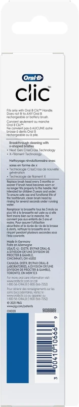 Oral-B Clic features a replaceable brush head so that it uses up to 60% less plastic over 2 years* *Uses 60% less plastic over 2 years vs. regular manual toothbrush changed every 3 months as per dentist recommendation