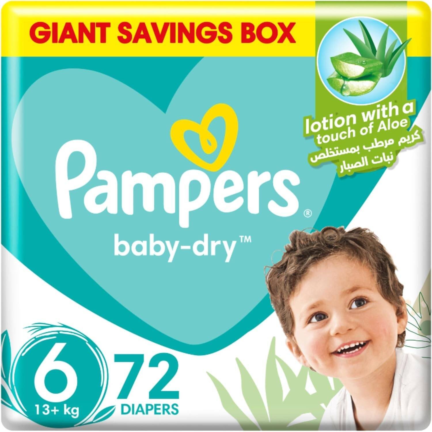 Pampers Baby Dry Diapers offer advanced leakage protection with 3x fortified layers and double leak guards. Infused with Aloe Vera lotion for rash prevention, these diapers ensure comfort and dryness for your baby. Features Double Leak Guards Aloe Vera Lotion For Rash Prevention Bigger & Wider Sides 3x Fortified Layers for Leakage Protection Comfortably Secure Taped Fit Enhanced Protection with Longer Core New Back Sheet Designs Engineered with New and Improved Diaper Technology +50% Aloe Vera LotionPampers, trusted for baby care essentials, known for innovative diaper technology and rash protection.Use As Needed For Diaper ChangesChoking Risk: Keep diapers and packaging away from baby's mouth. Discard any torn or unsealed diaper immediately.